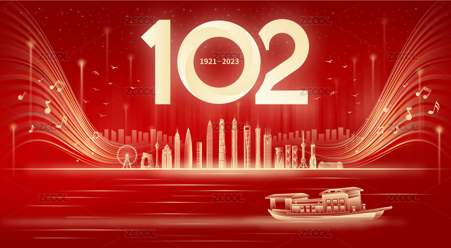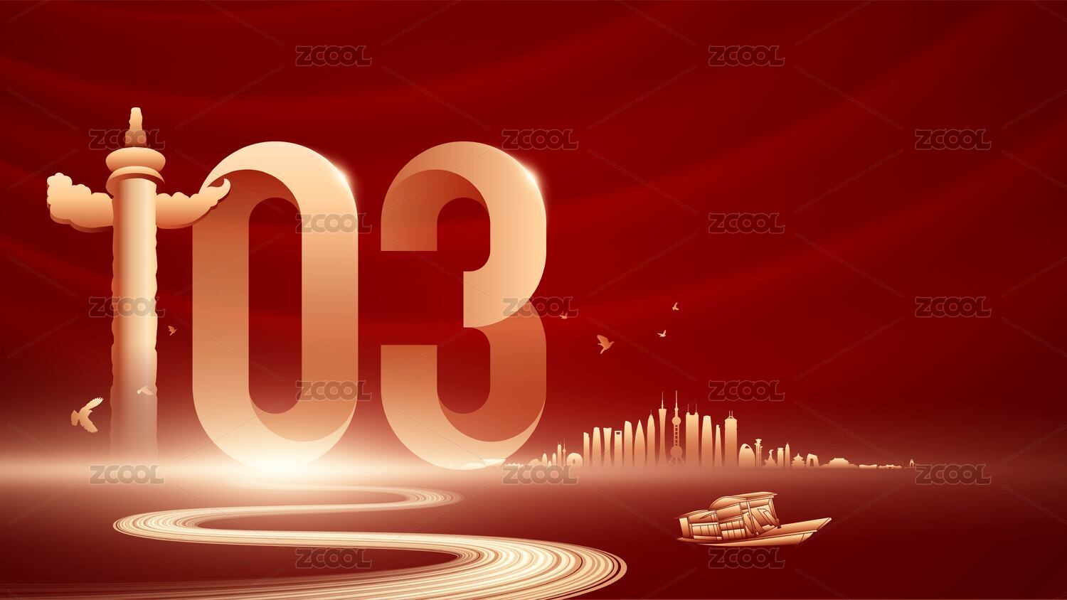 城市,插画,背景,抽象,光效,海报,百年,数字,周年庆,建党节