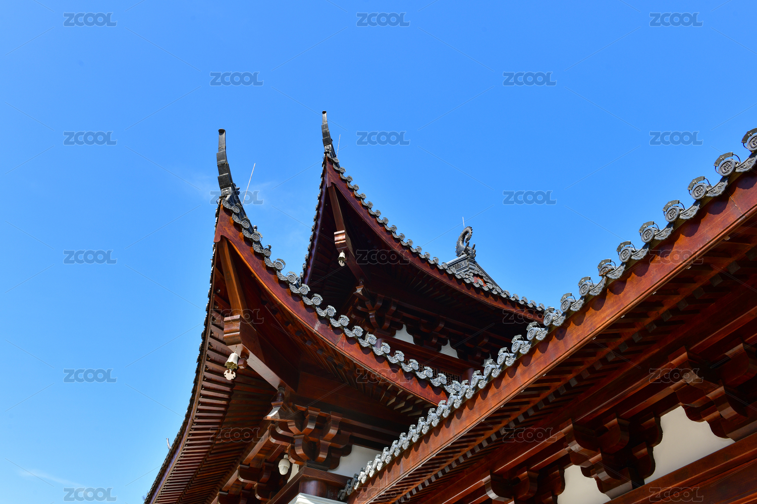 晴朗的蓝天下,镇江北固山公园古建筑屋檐