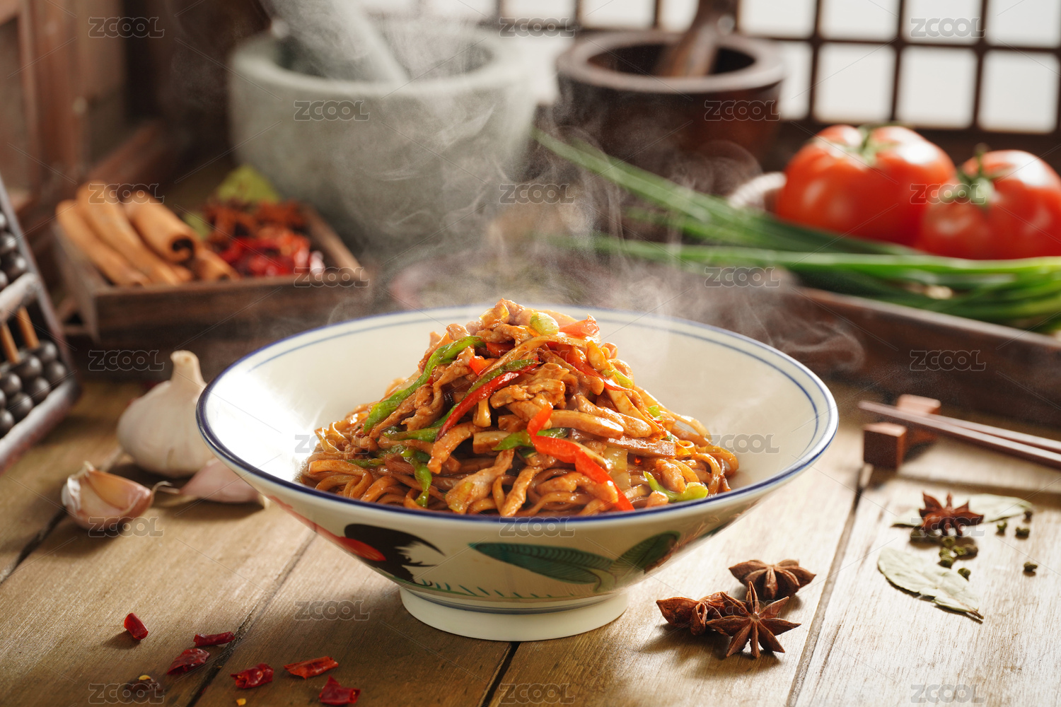 大理石碗里的重庆小吃豌豆麻辣鸡丝凉面