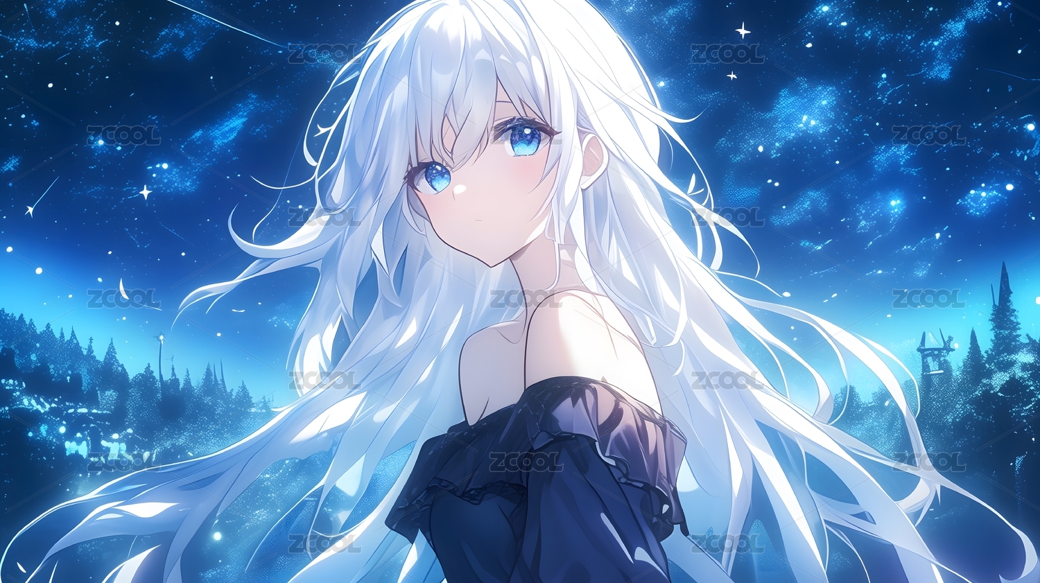 白发蓝眸少女梦幻般的蓝色世界