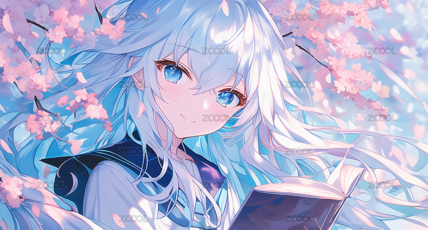 梦幻二次元美女手持书本