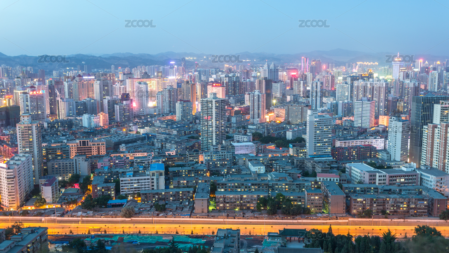 中国福建省福州市城区高楼建筑夜景灯光环境景观