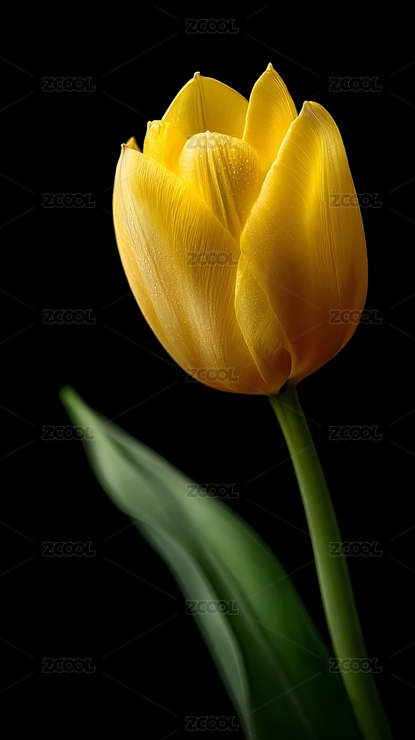 黑色背景黄郁金香