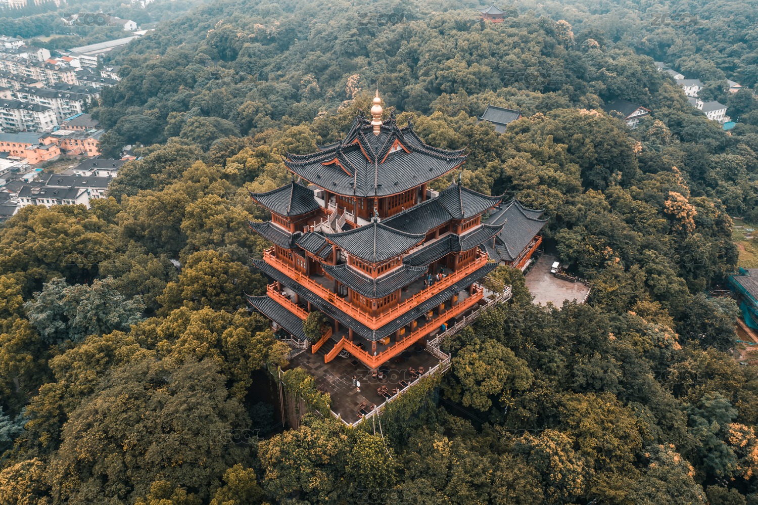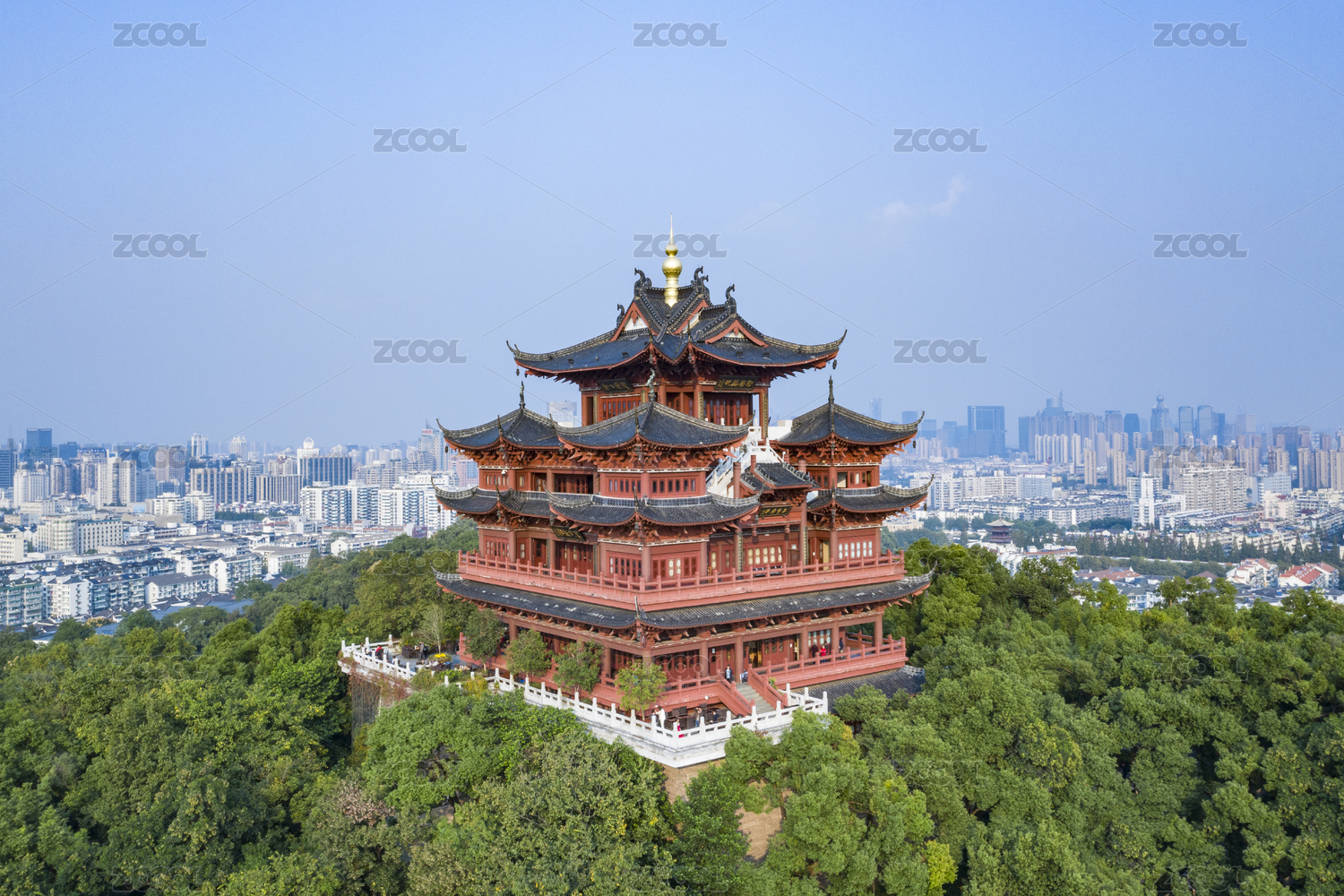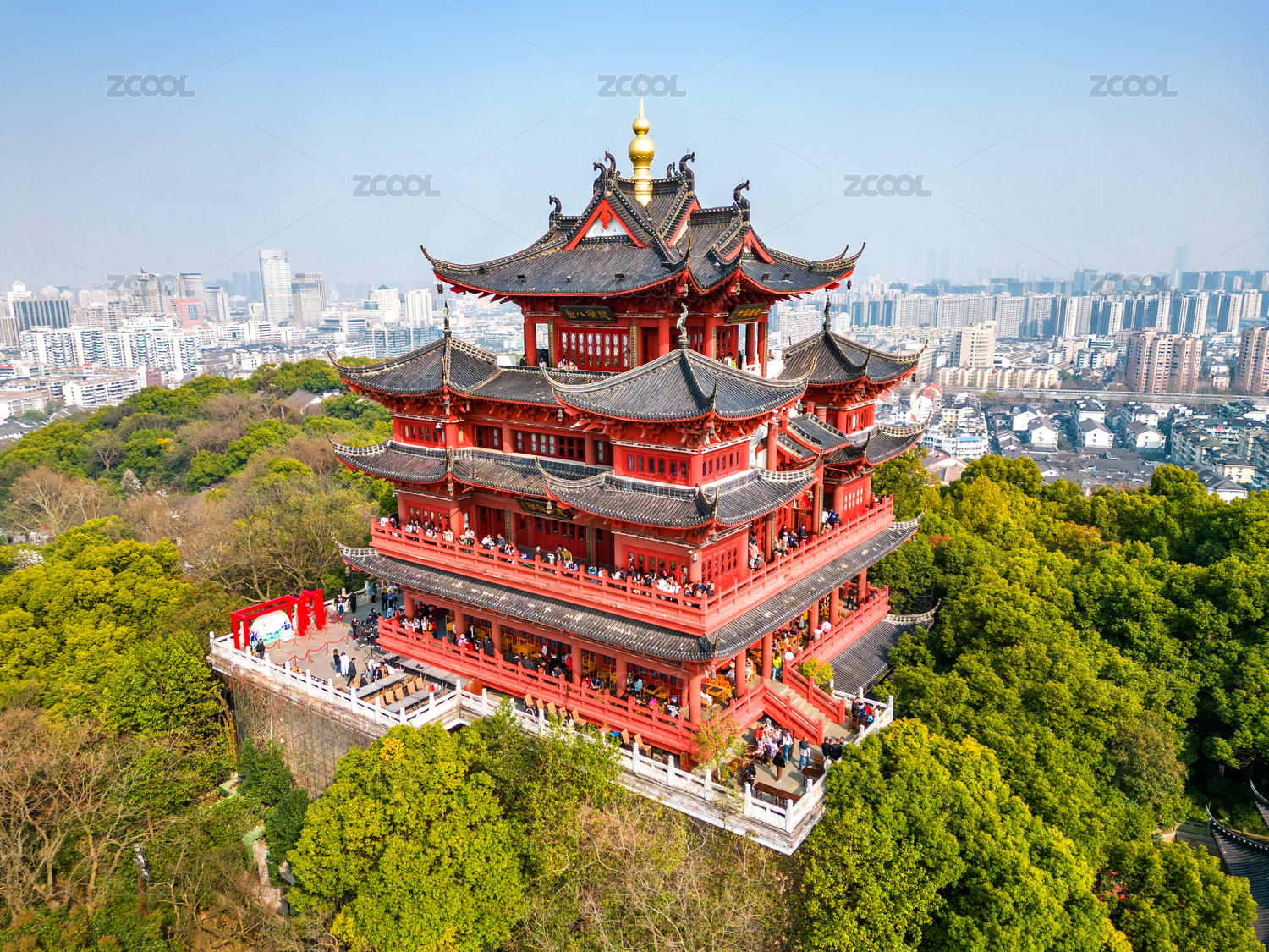 杭州,吴山,伍公山,城隍阁,城隍山,建筑,航拍,航拍视角,高视角,俯瞰