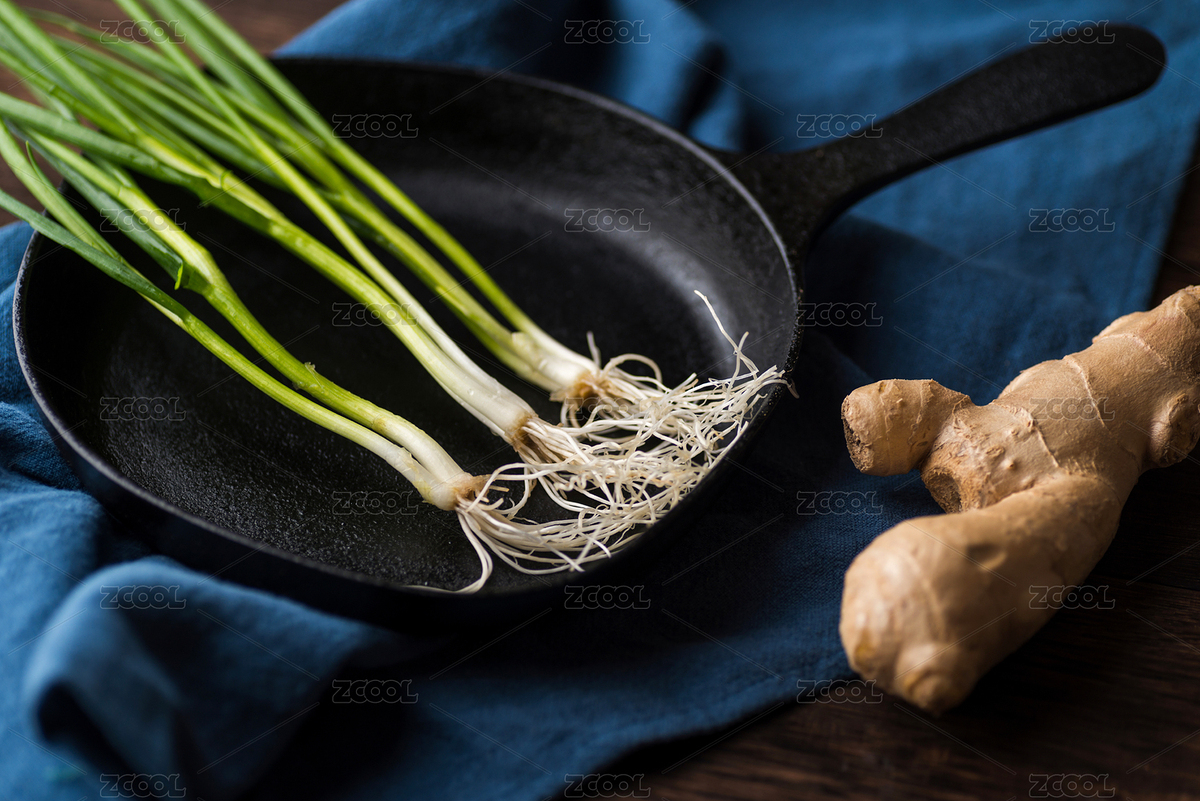 不粘锅,勾装指,厨具,厨房用品,去腥,因地辛,姜块,姜根,小葱,平底煎锅