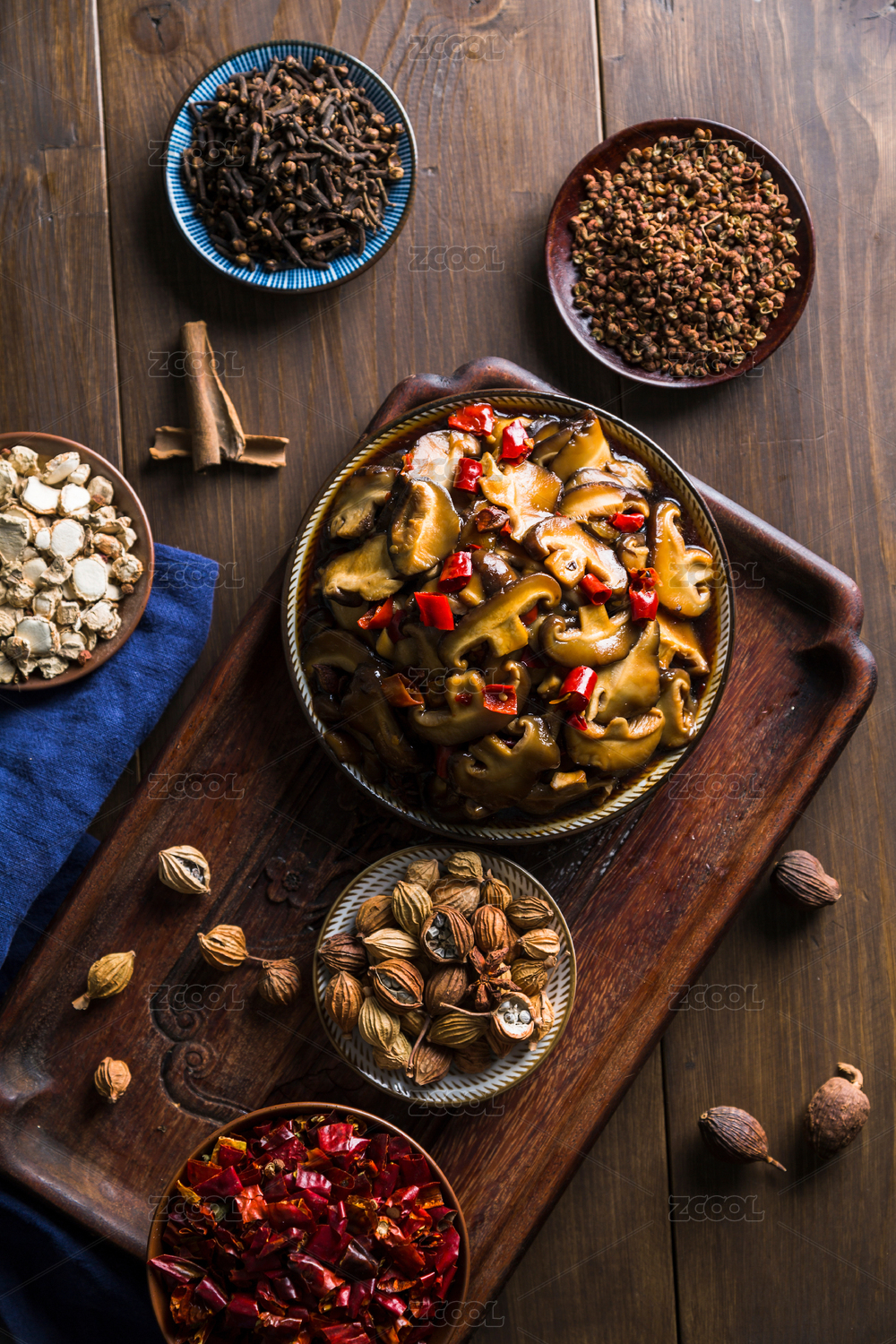 软糯鲜爽的麻辣香菇和多种香辛调味料