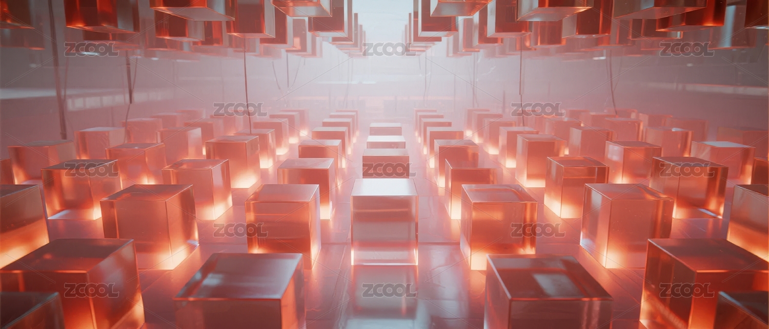 未来,立方体,阵列,光线,发光,科技,金属,暗色,蓝色,橙色