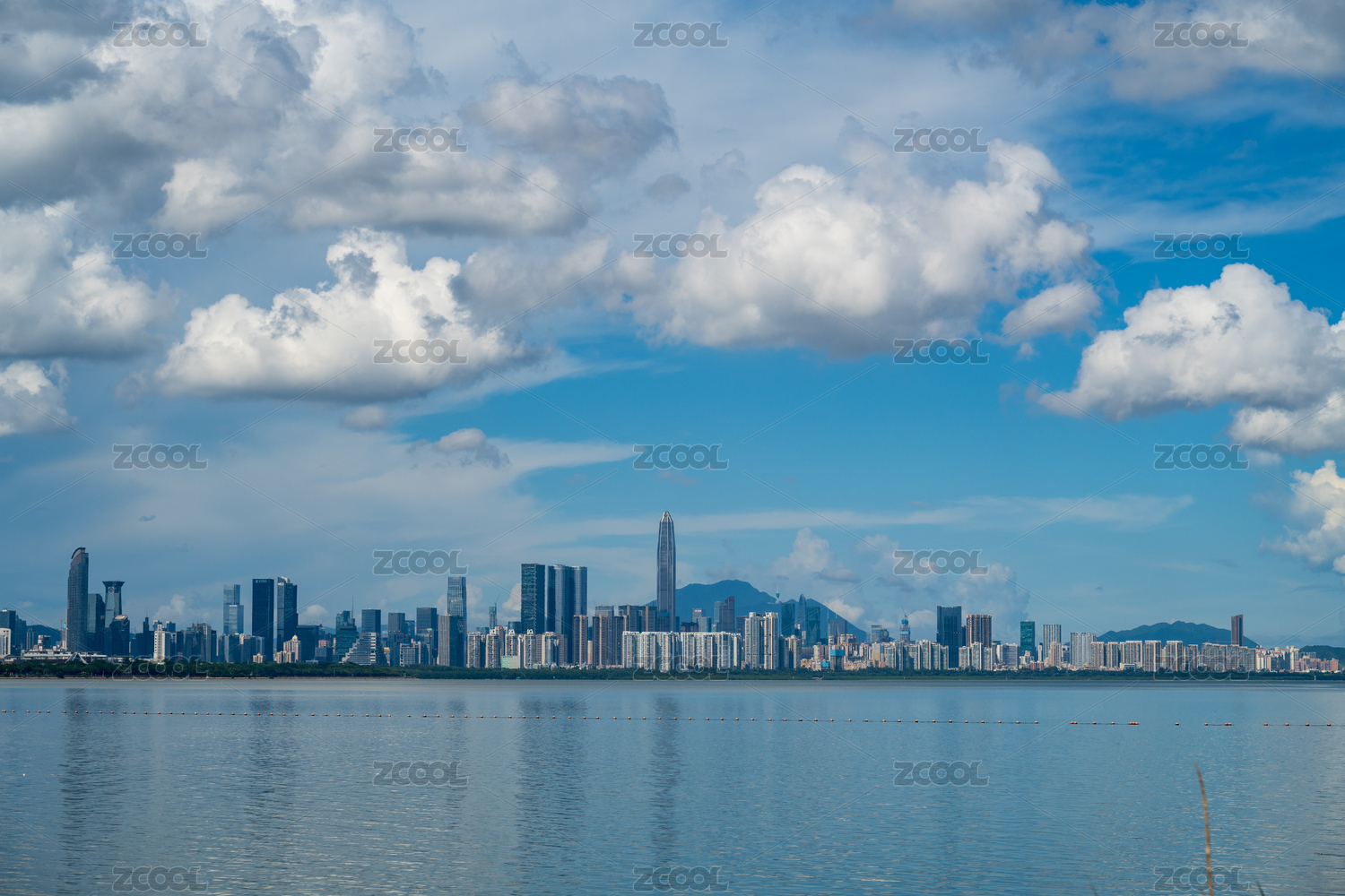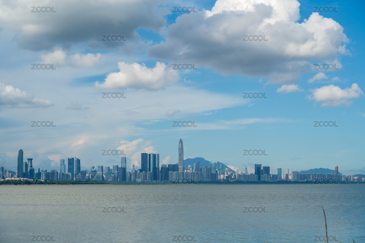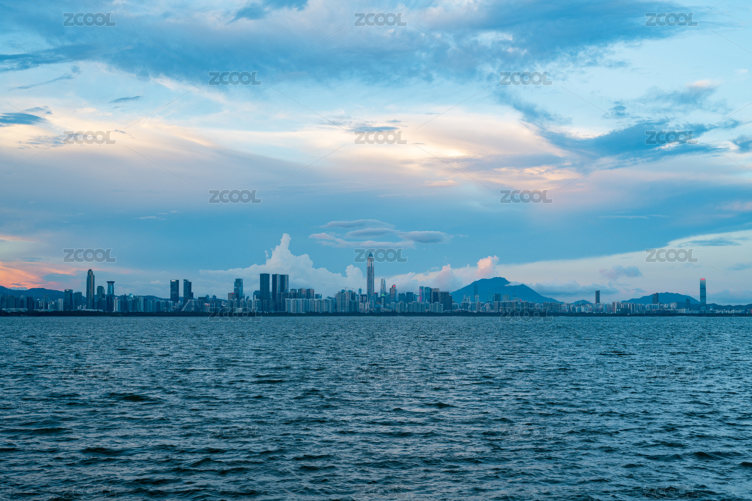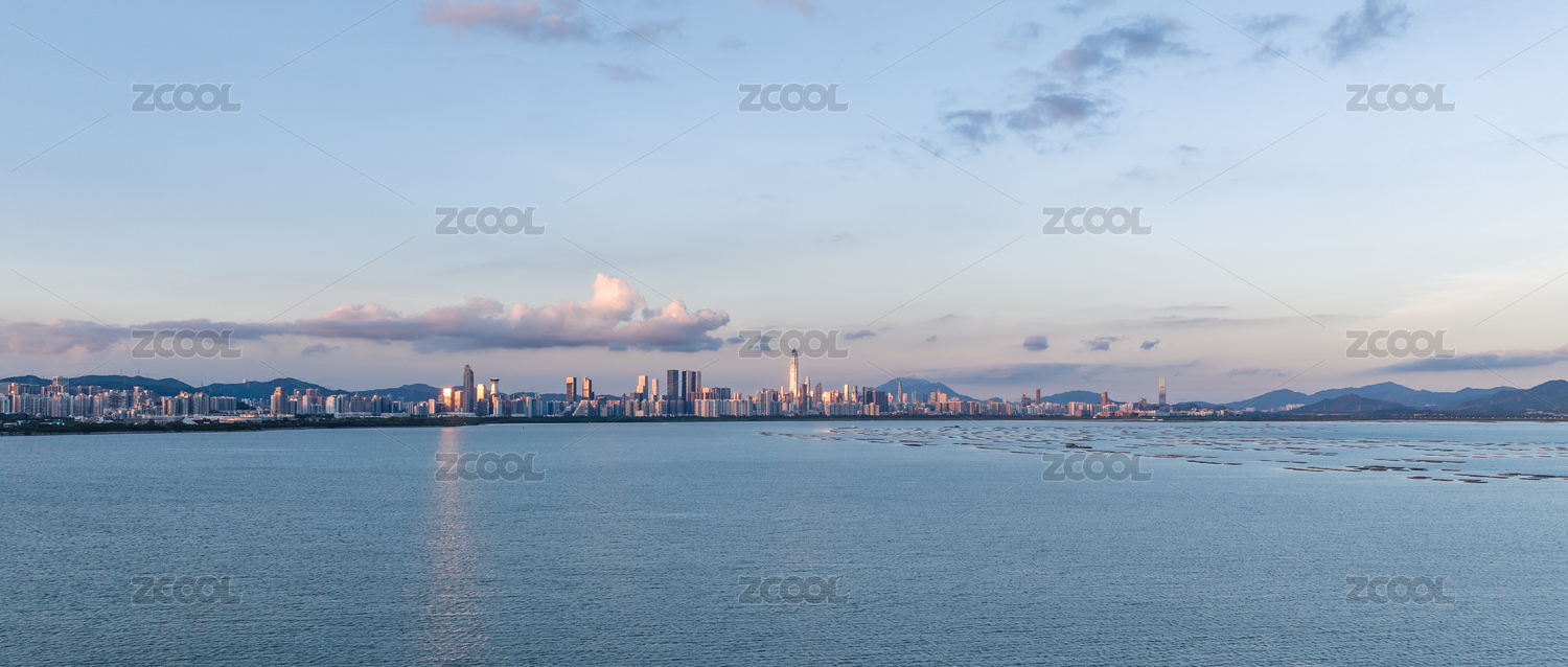 广东大湾区深圳前海湾涂滩日落城市夜景航拍