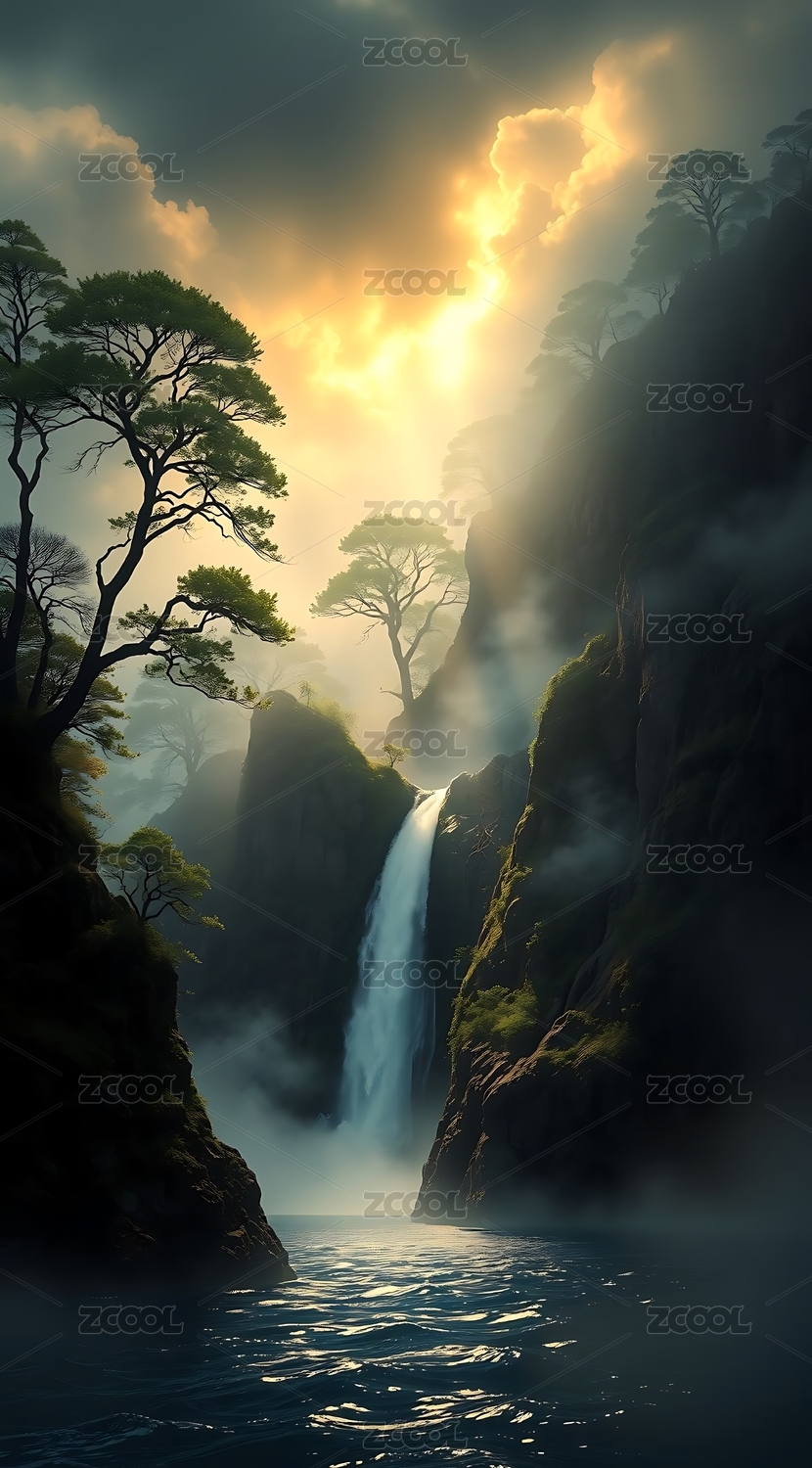 山林瀑布主题