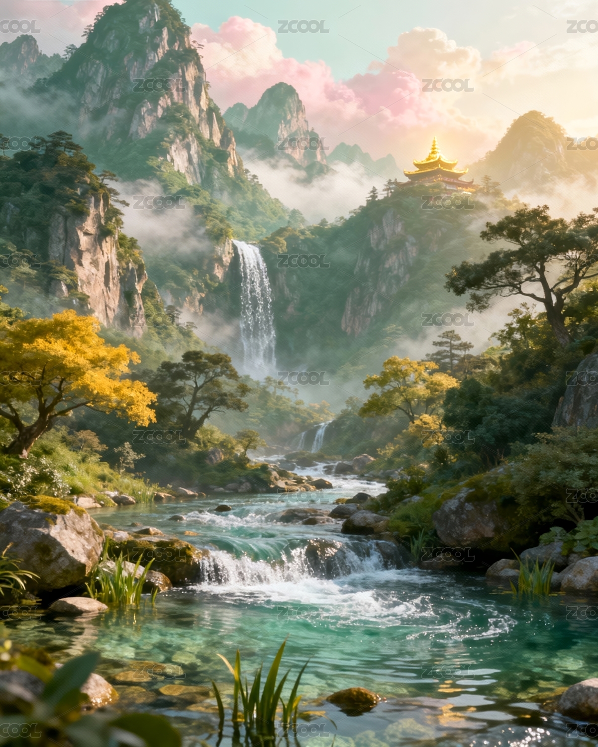 仙境般梦幻瀑布山谷奇观