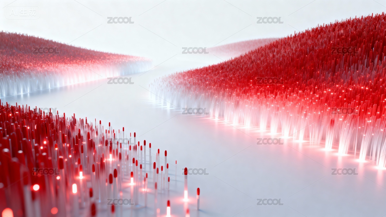 3D无数红色细小条块组成的空间主视觉背景