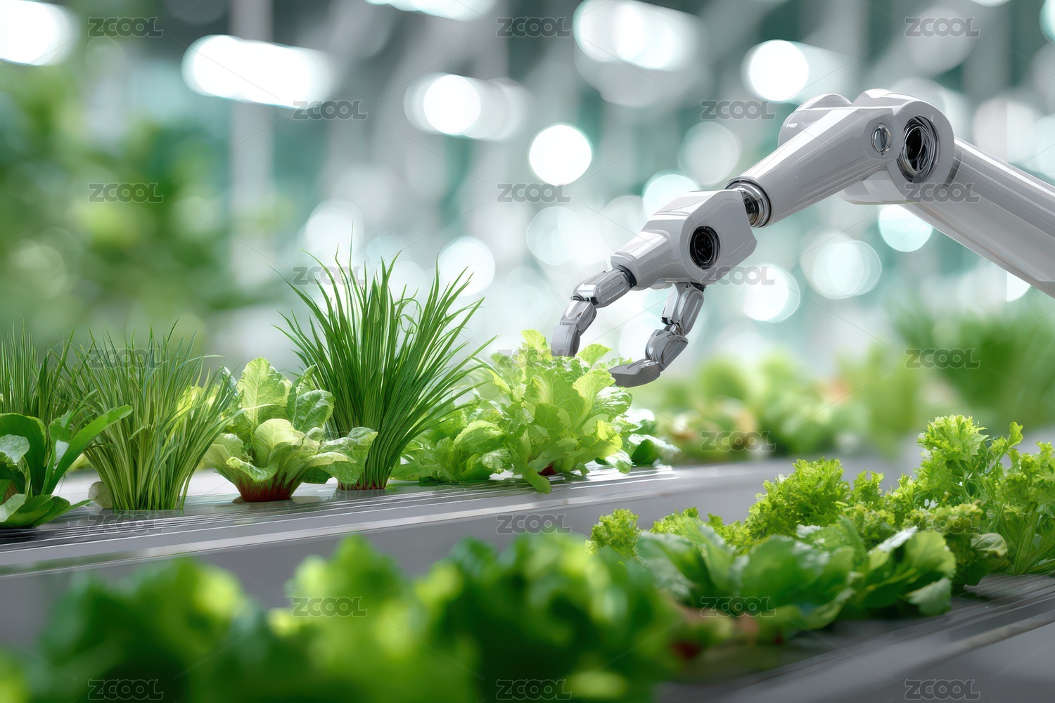 智能机械臂正在给蔬菜浇水,智能种植概念插