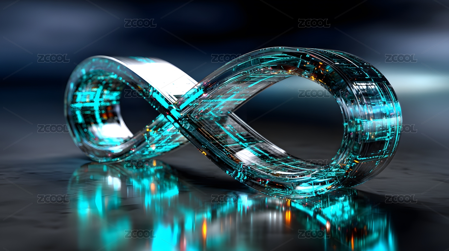 光,环,彩色,交织,旋转,发光,蓝色,紫色,银色,抽象