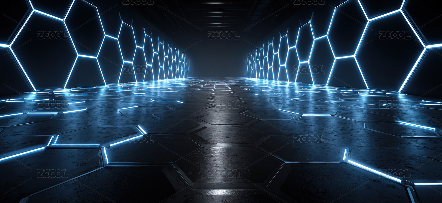 3D未来科技赛博朋克霓虹光效展台空间背景