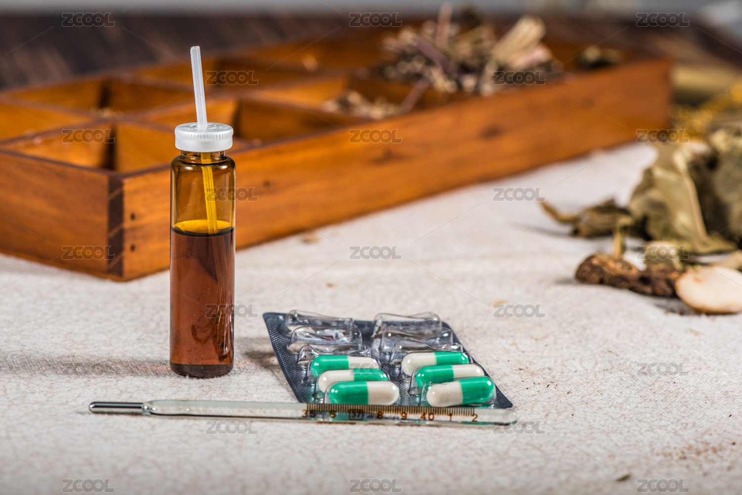 处方配置各种适量中西药材口服液特写