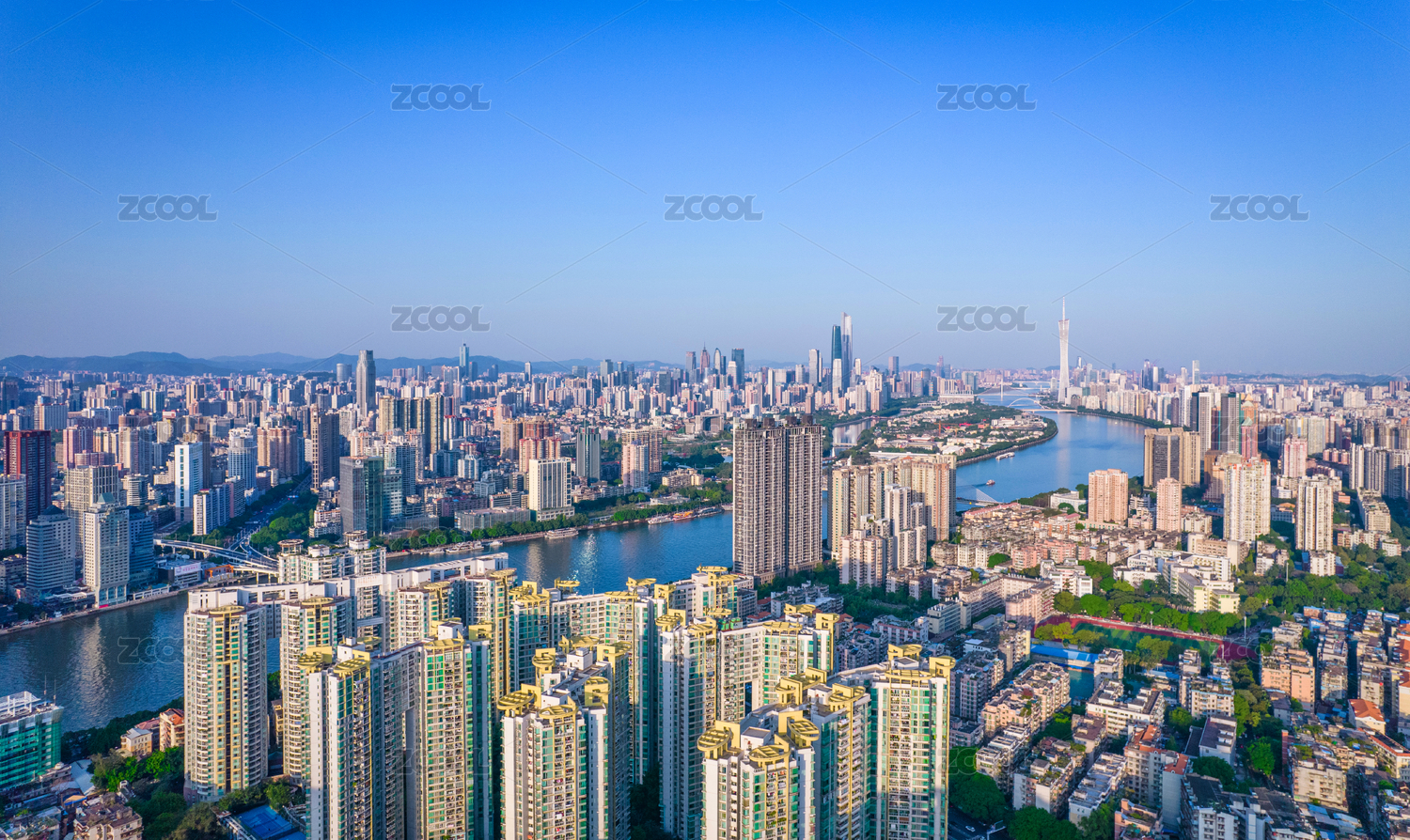 中国广东广州珠江风光航拍