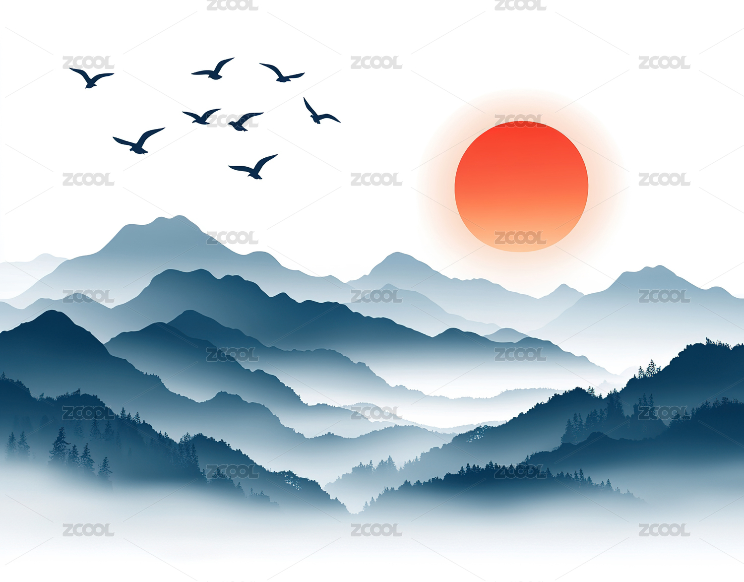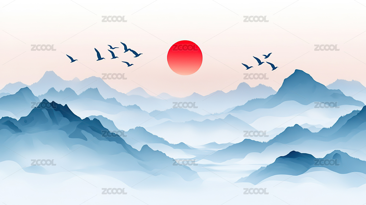 剪影,背景,国风,无人,地形,高山,中国文化,太阳,创造力