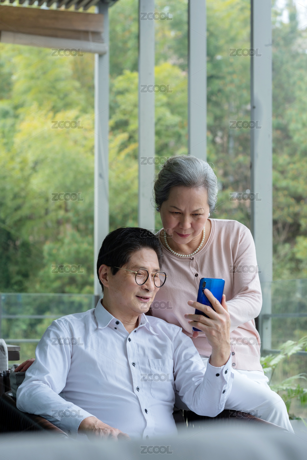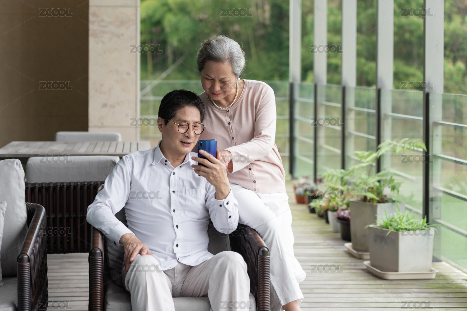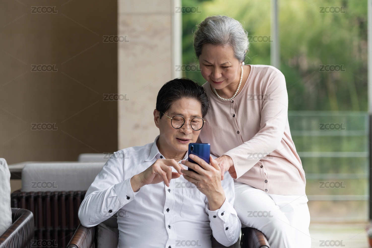 亚洲人,成人,老年人,男性,夫妻,夫妇,手机,移动,通讯,沟通
