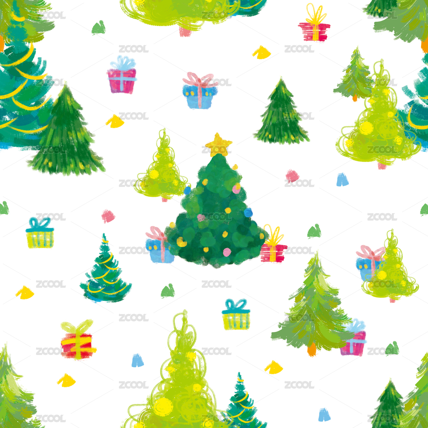 圣诞树圣诞帽礼物元素无缝拼接背景
