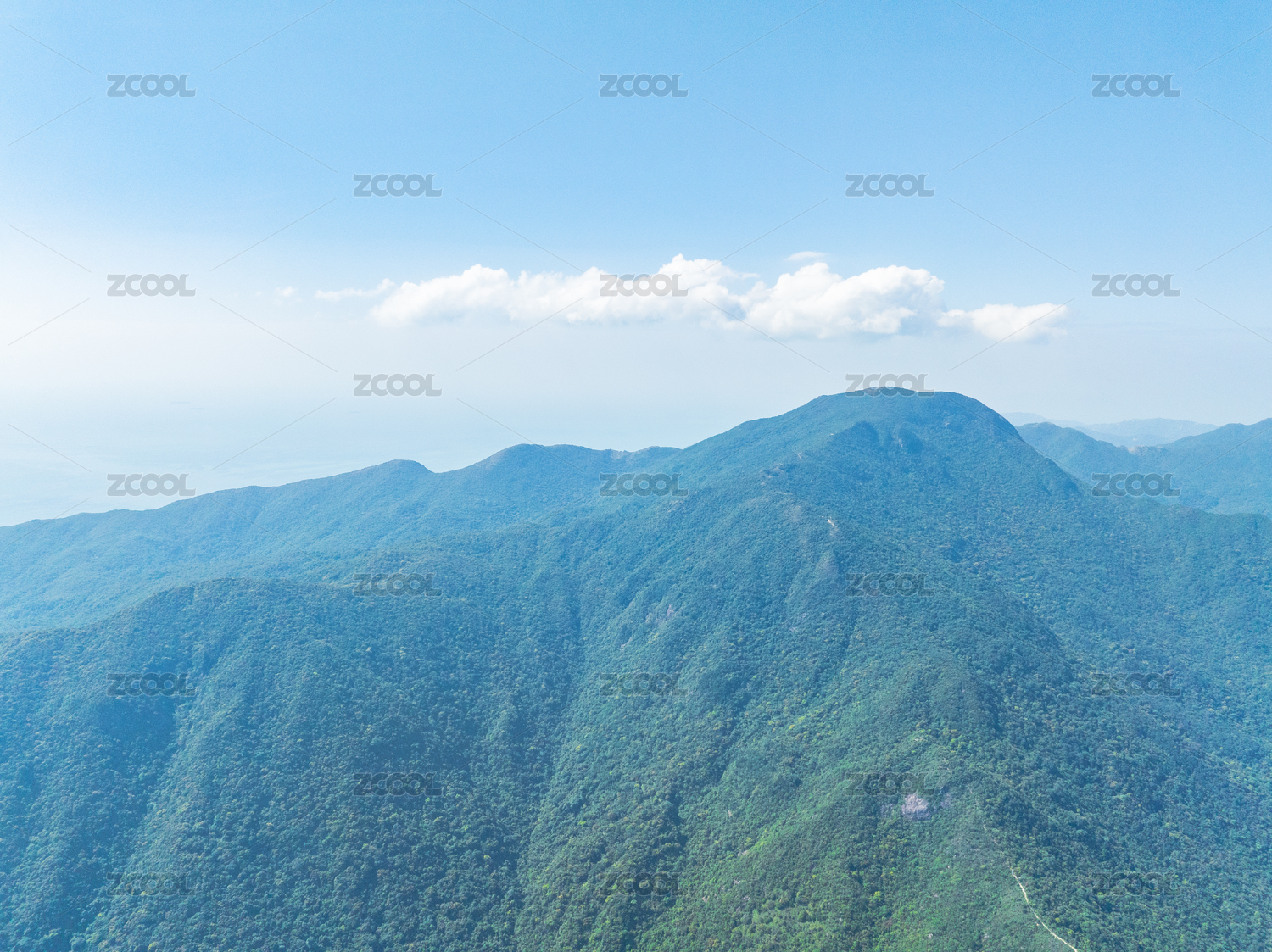 中国深圳,蓝天白云下蜿蜒的梧桐山脉
