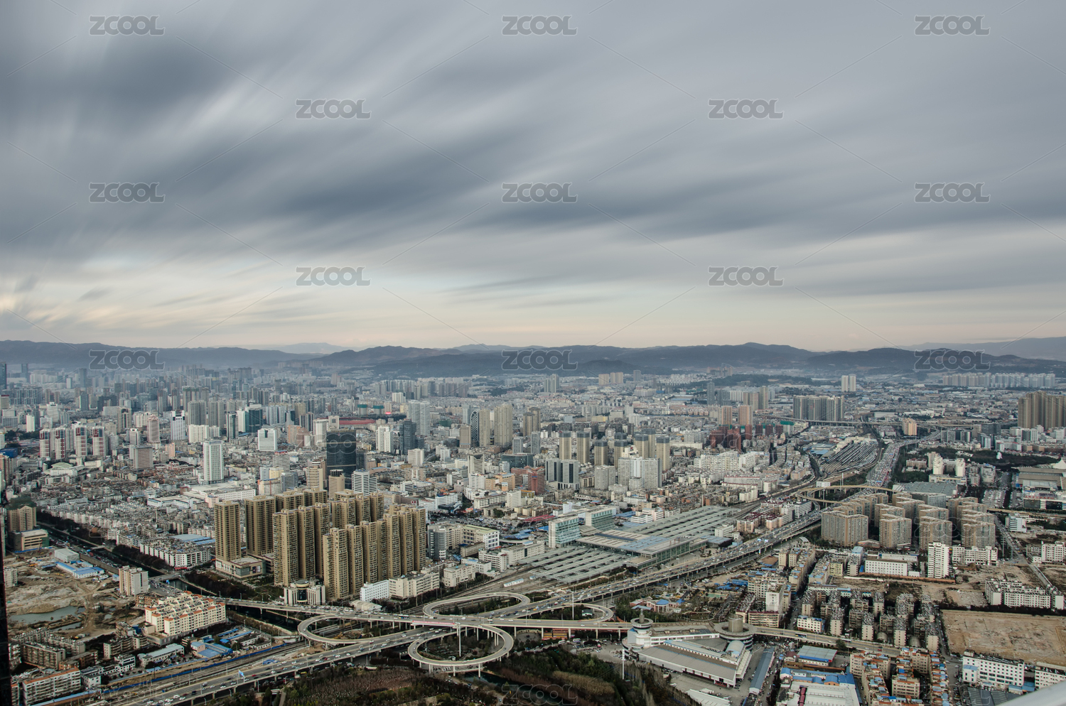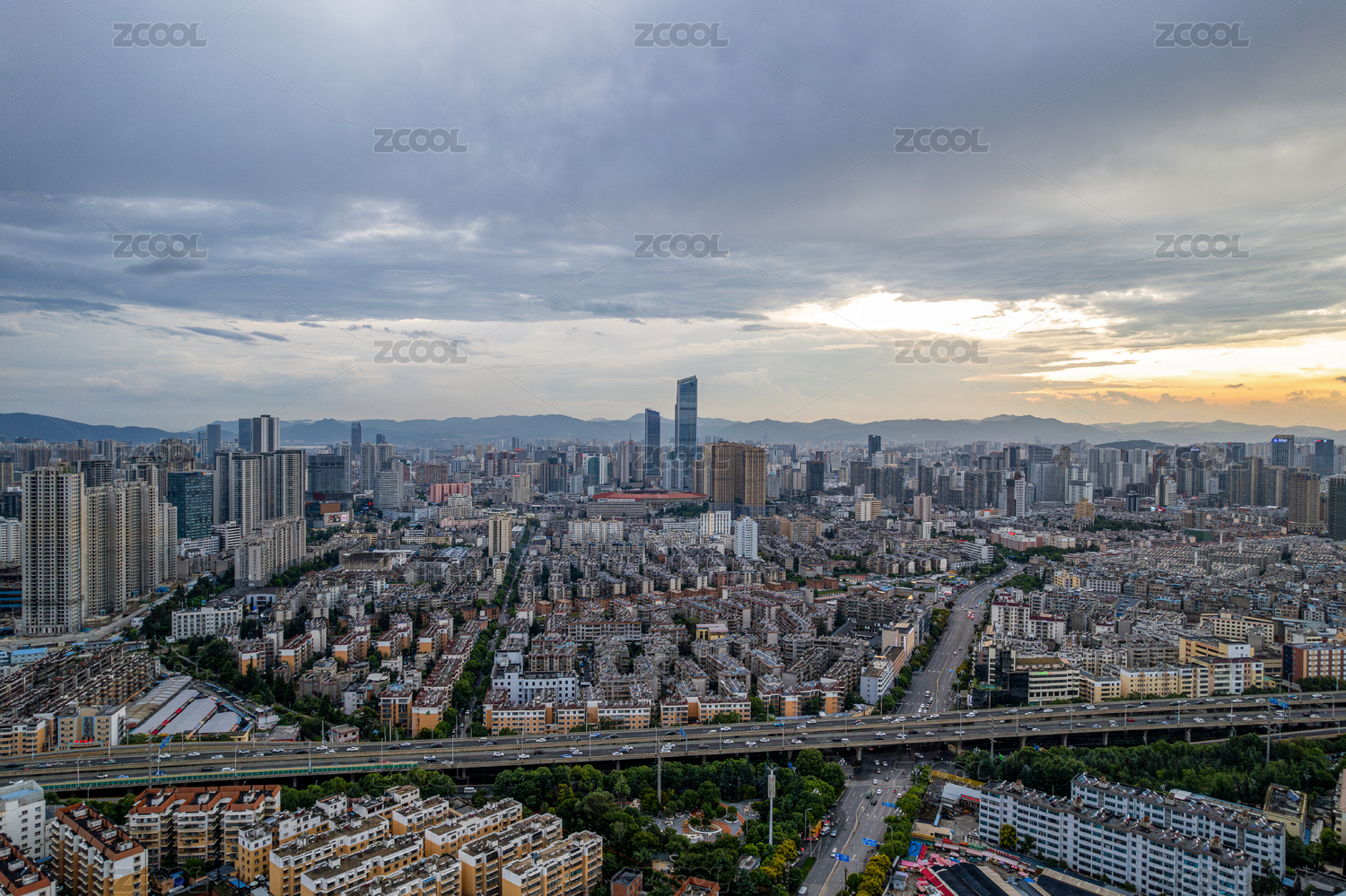 昆明城市立交桥黄昏都市风光