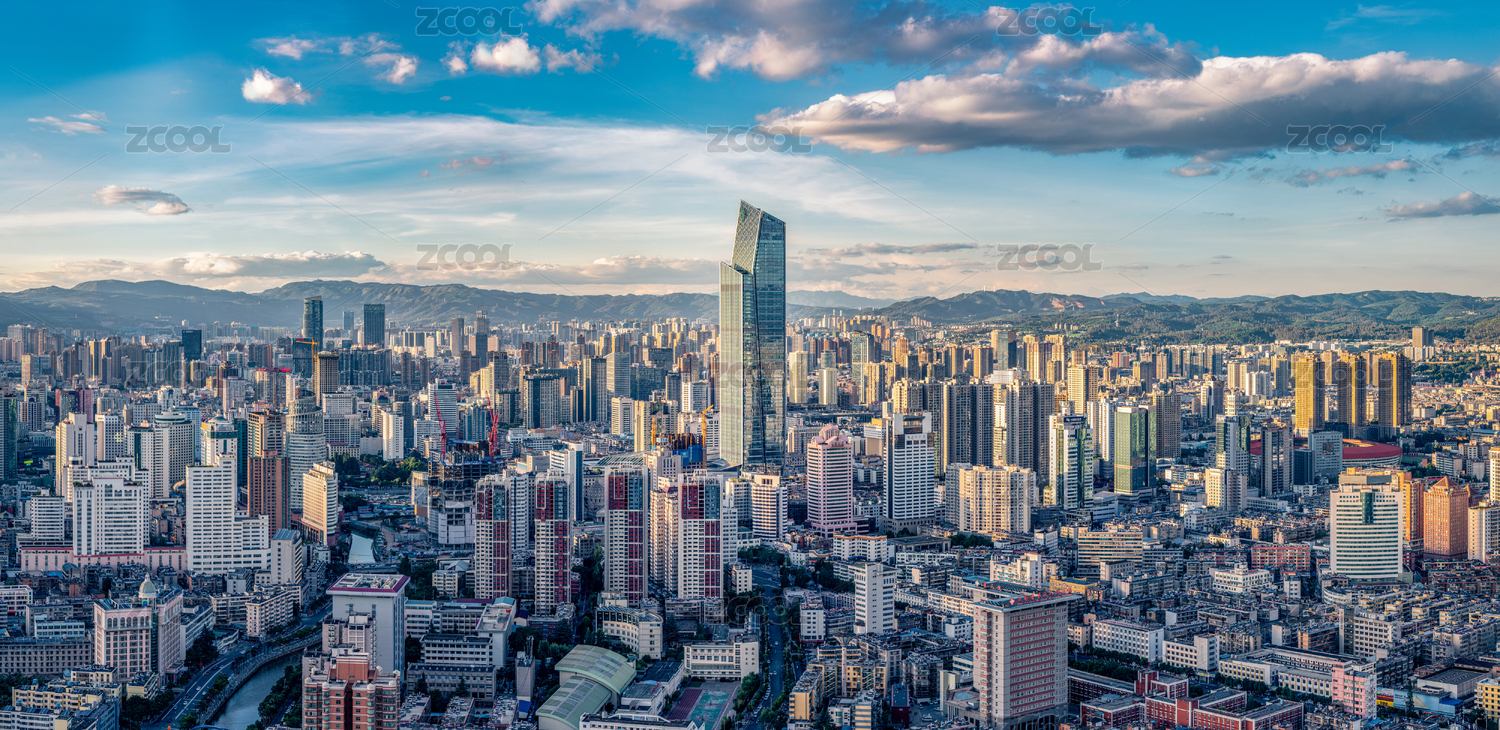 航拍云南昆明盘龙区城市天际线市区高楼大厦