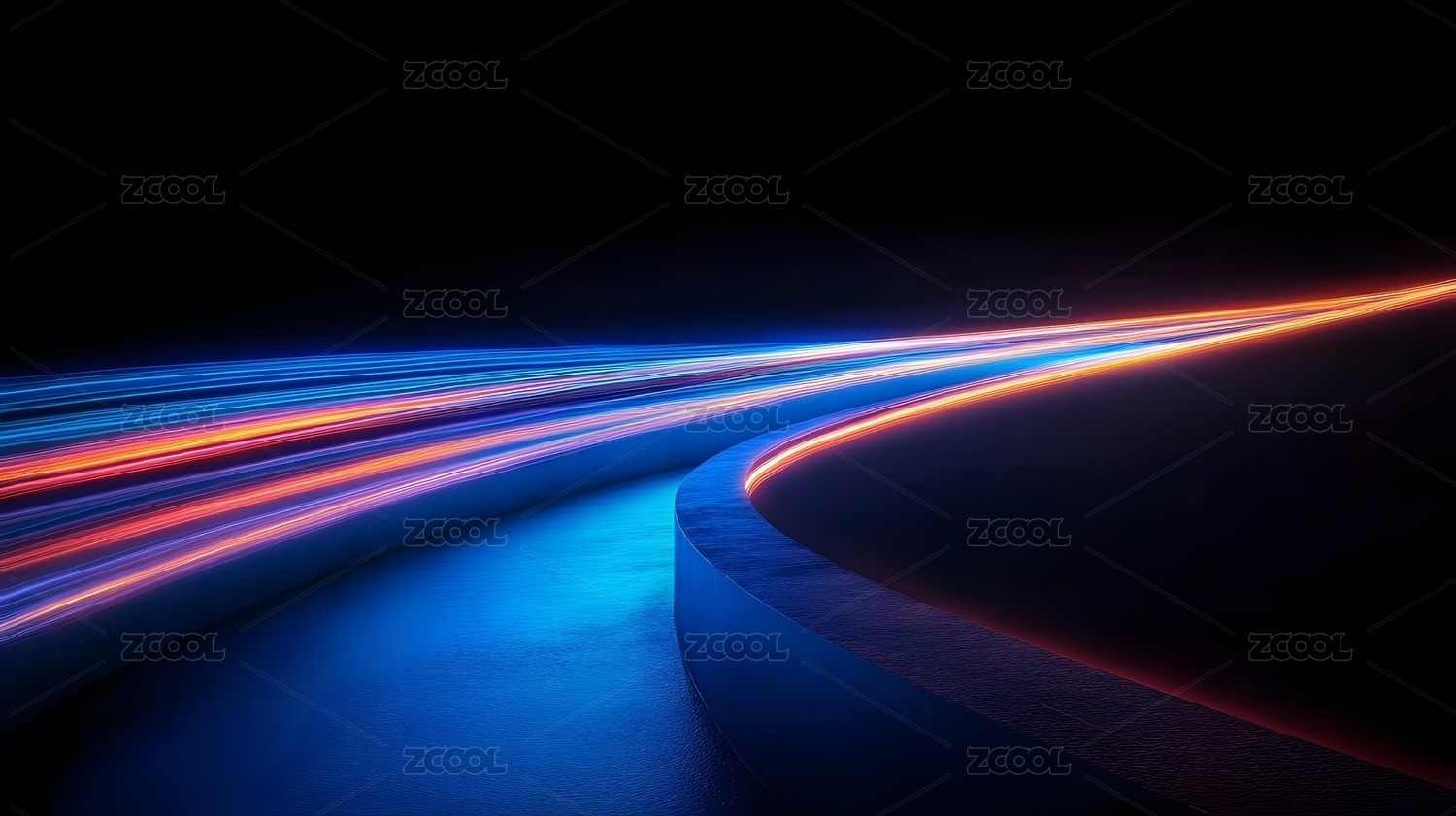 光滑流动的色彩线条在深色背景下交织,展现