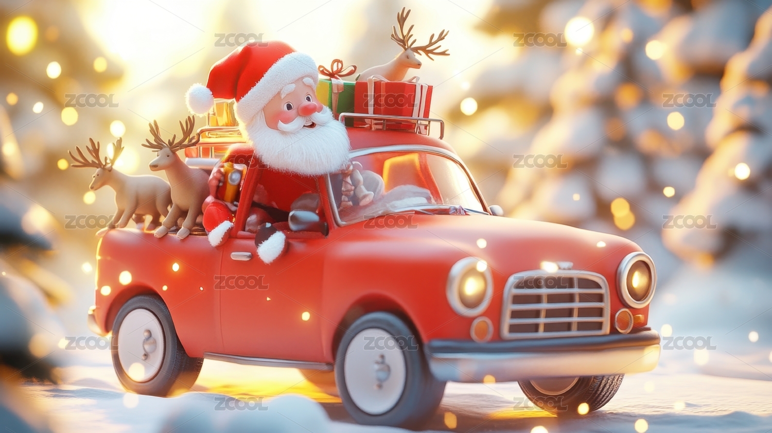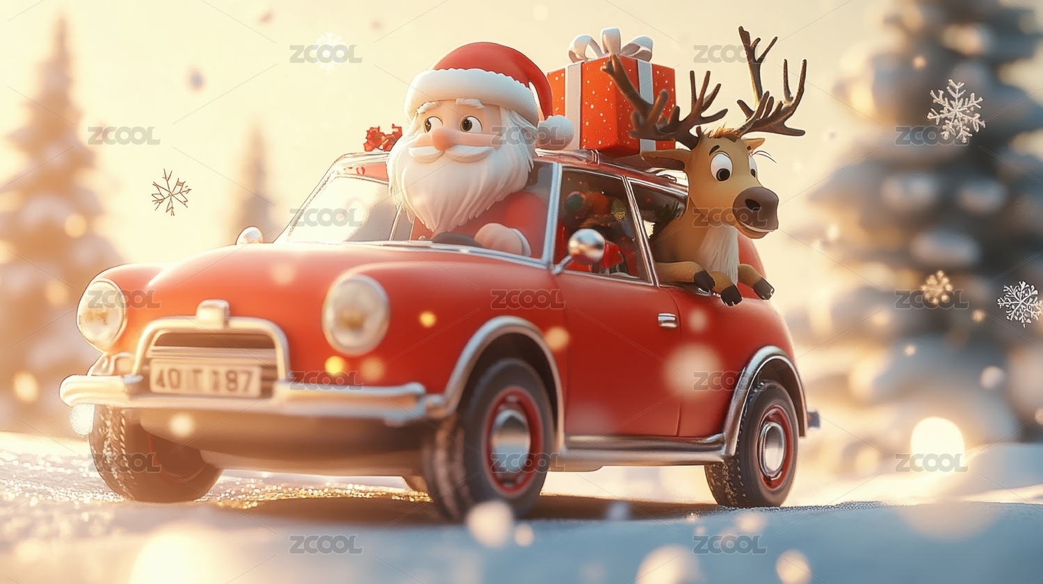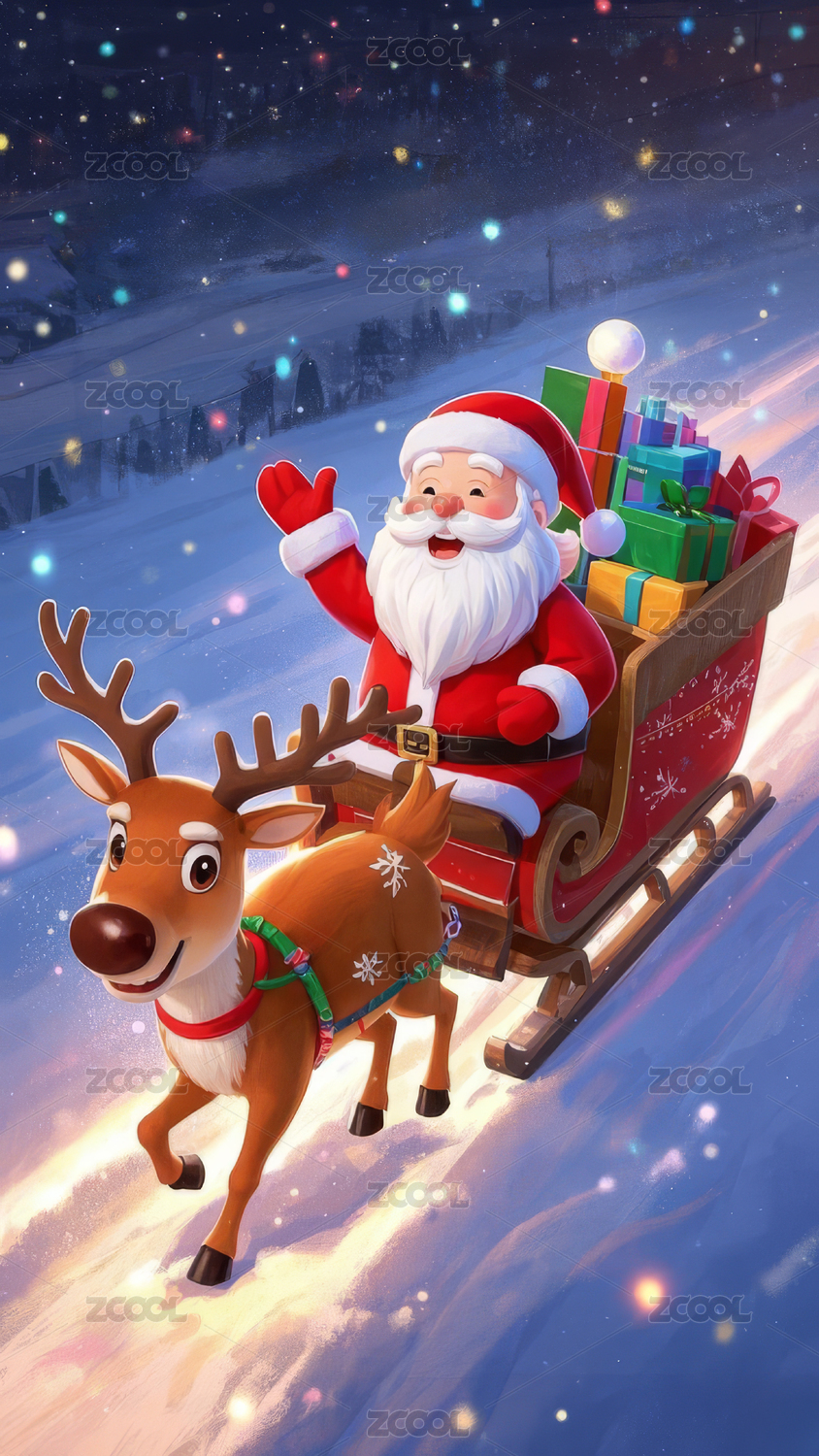 圣诞节,礼物,鹿,红色,雪天,可爱,圣诞老人