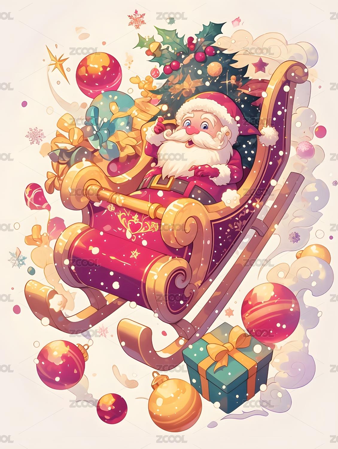 驾驶着机械蒸汽朋克雪橇的圣诞老人