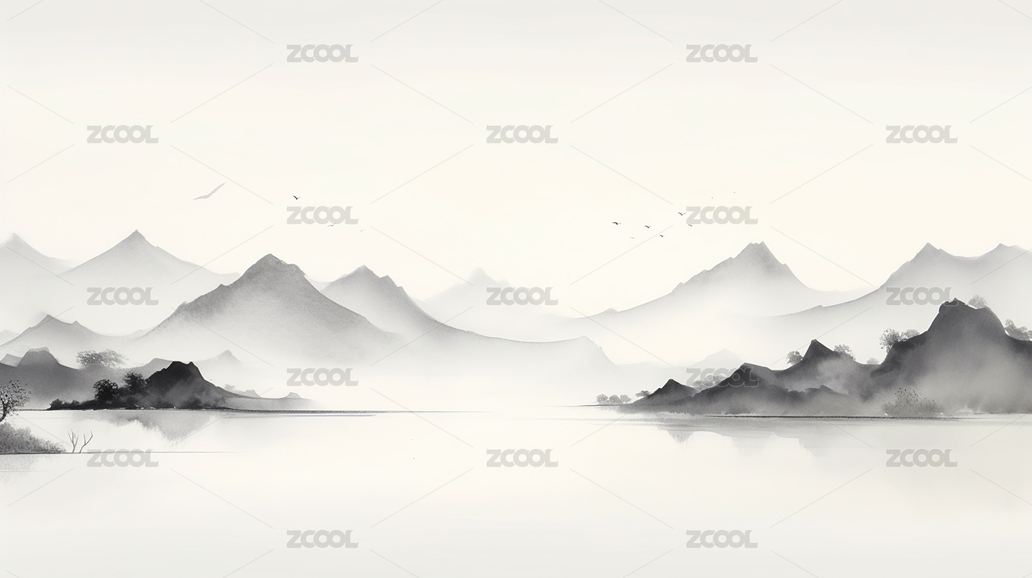 中国风意境水墨山水画