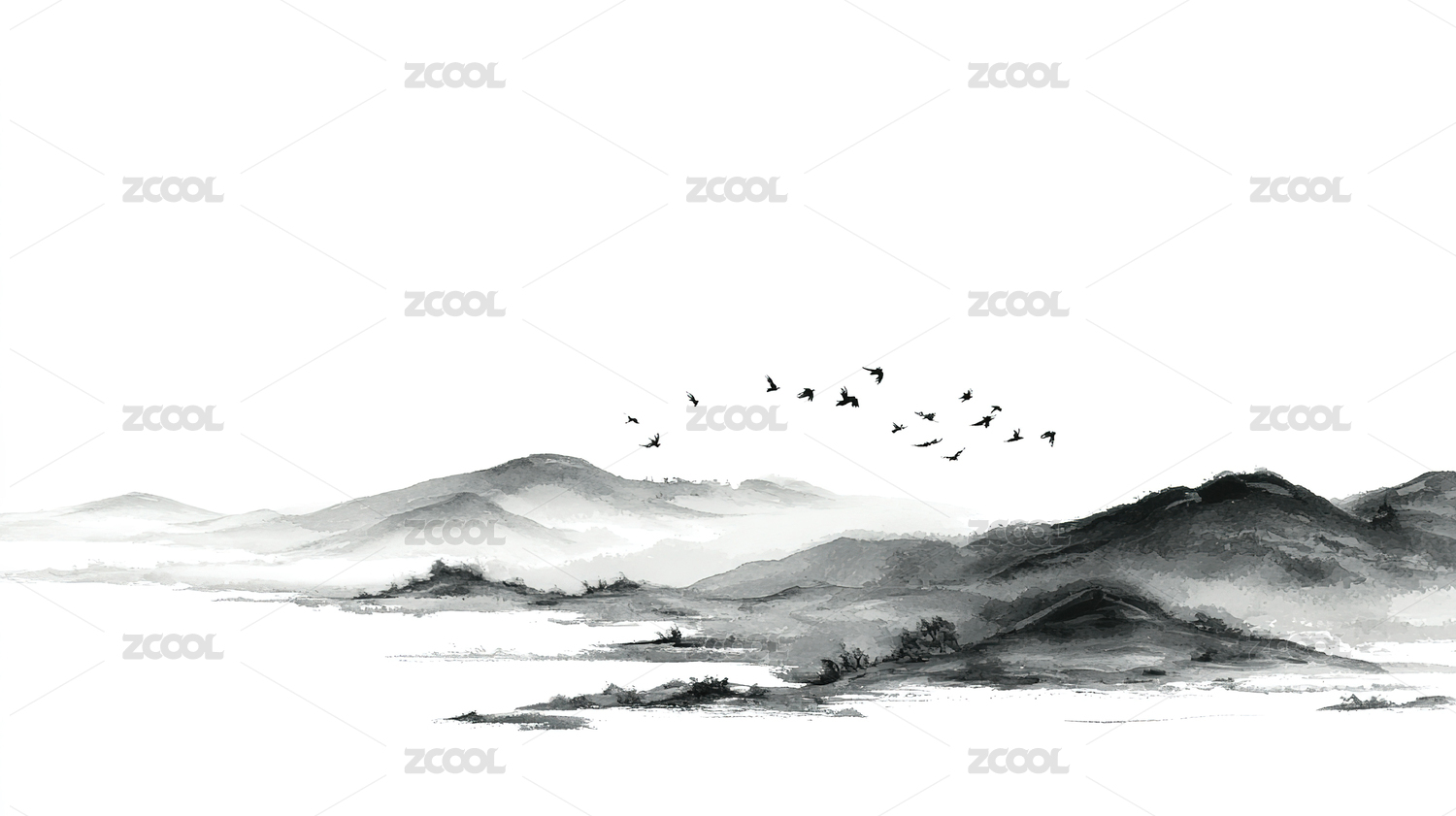 黑白水墨远山简约背景