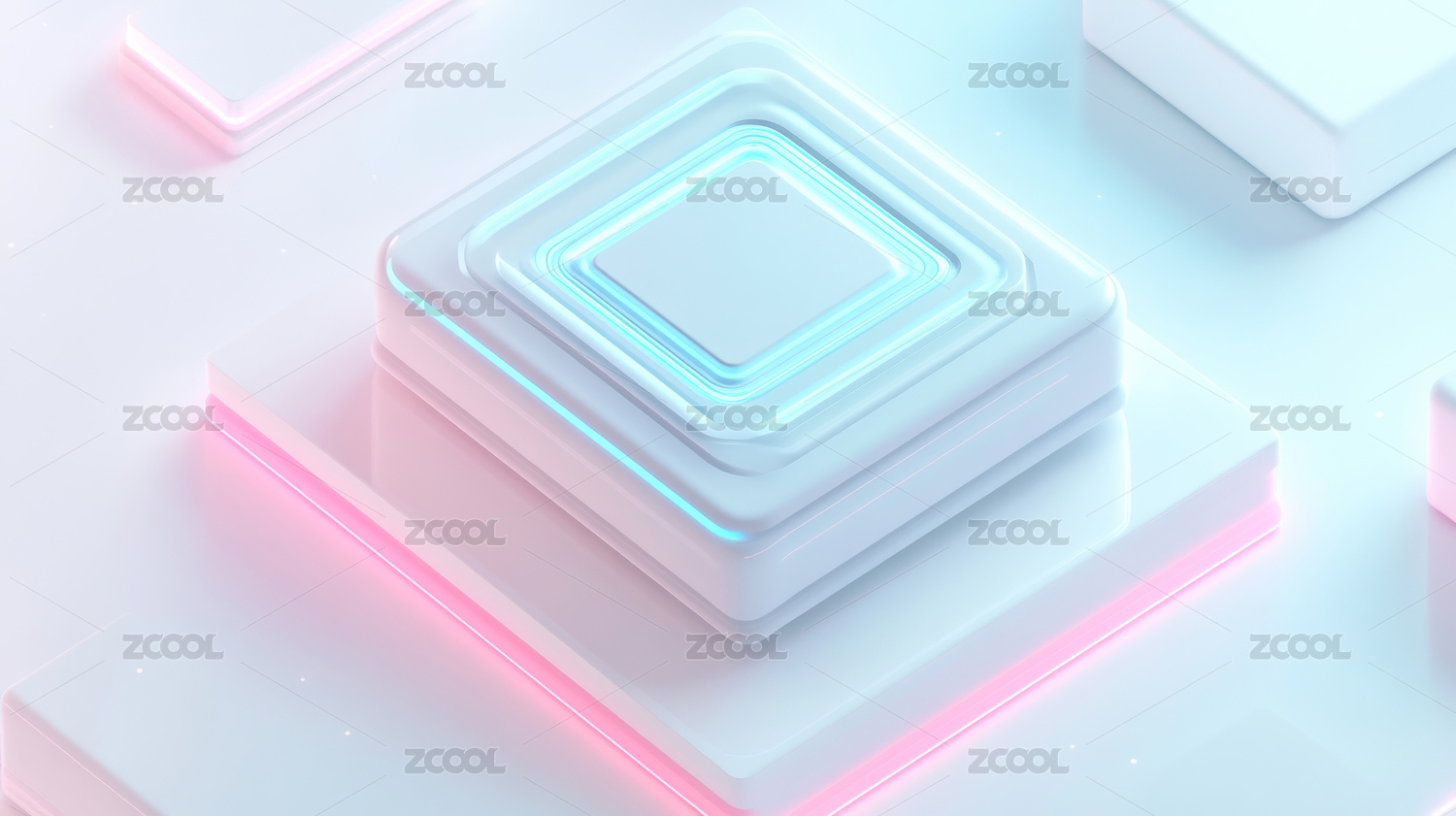 唯美透明粉色方形科技背景