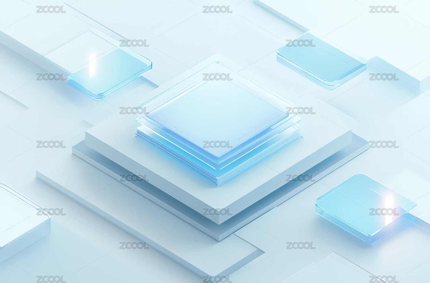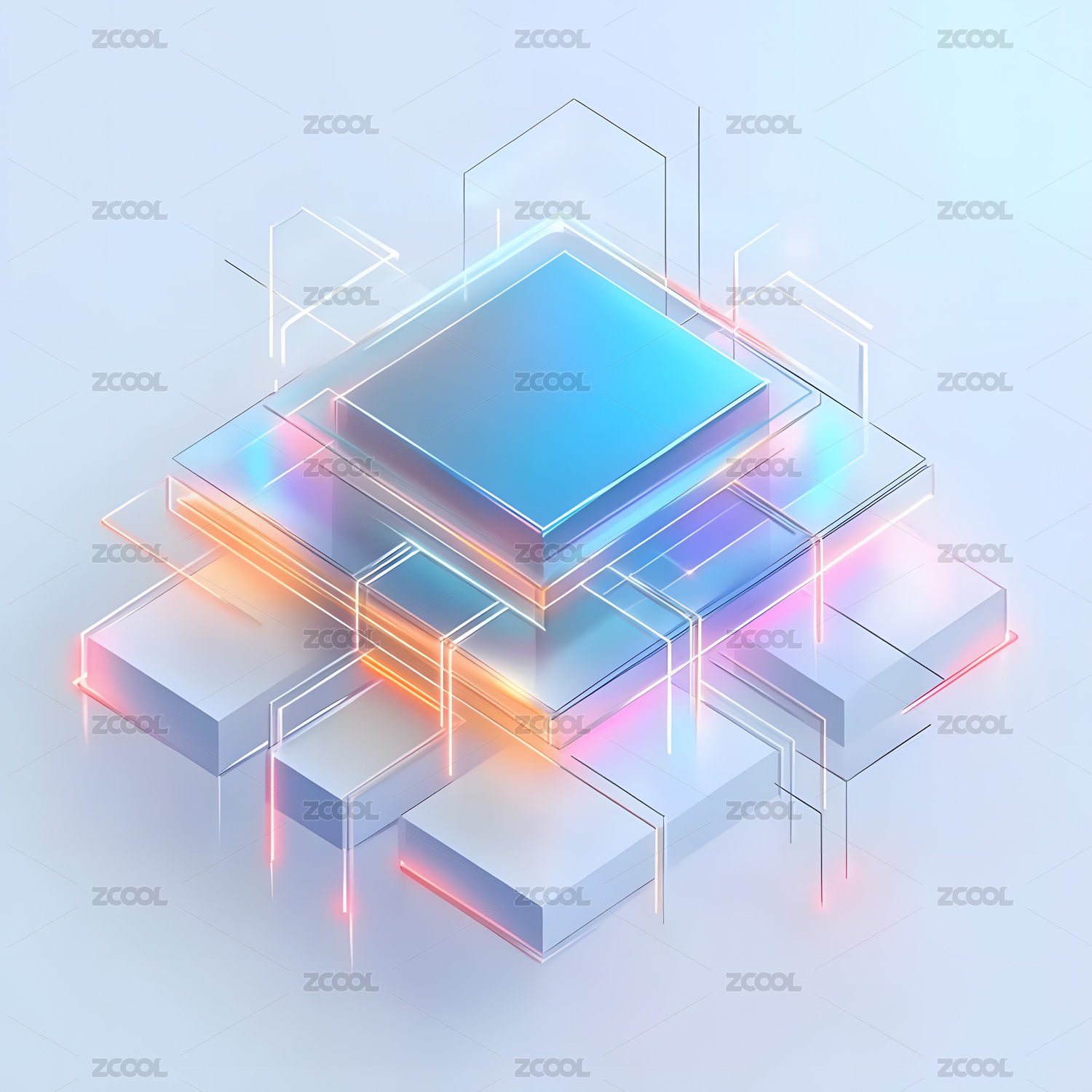 堆叠的芯片与科技线条