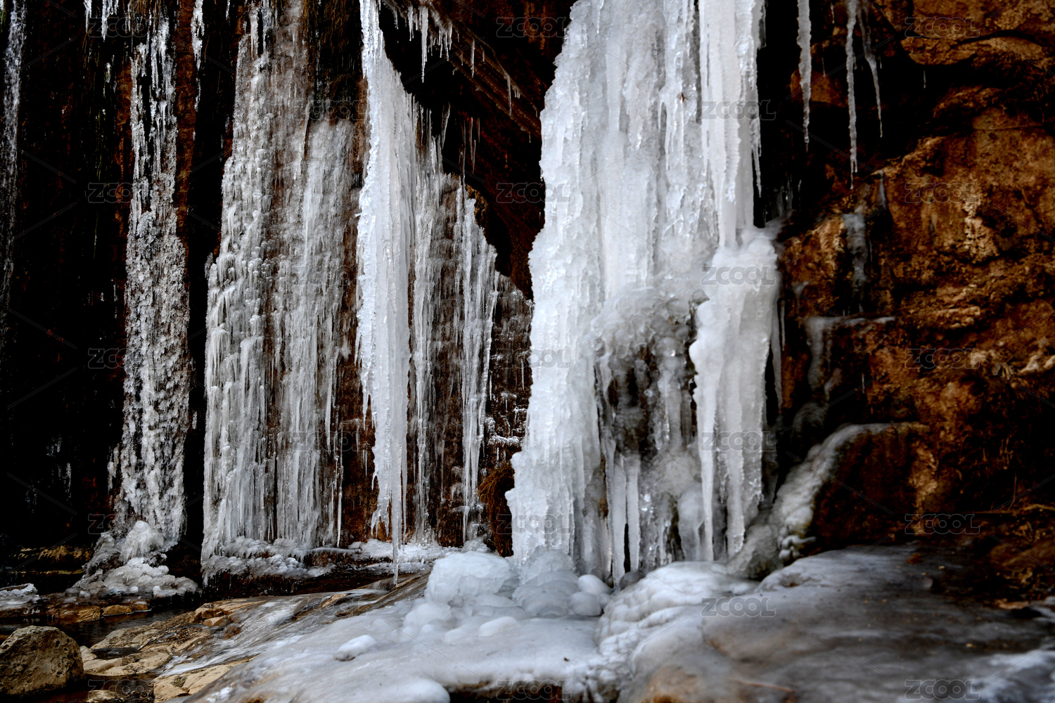 冬天瀑布结冰 冰面