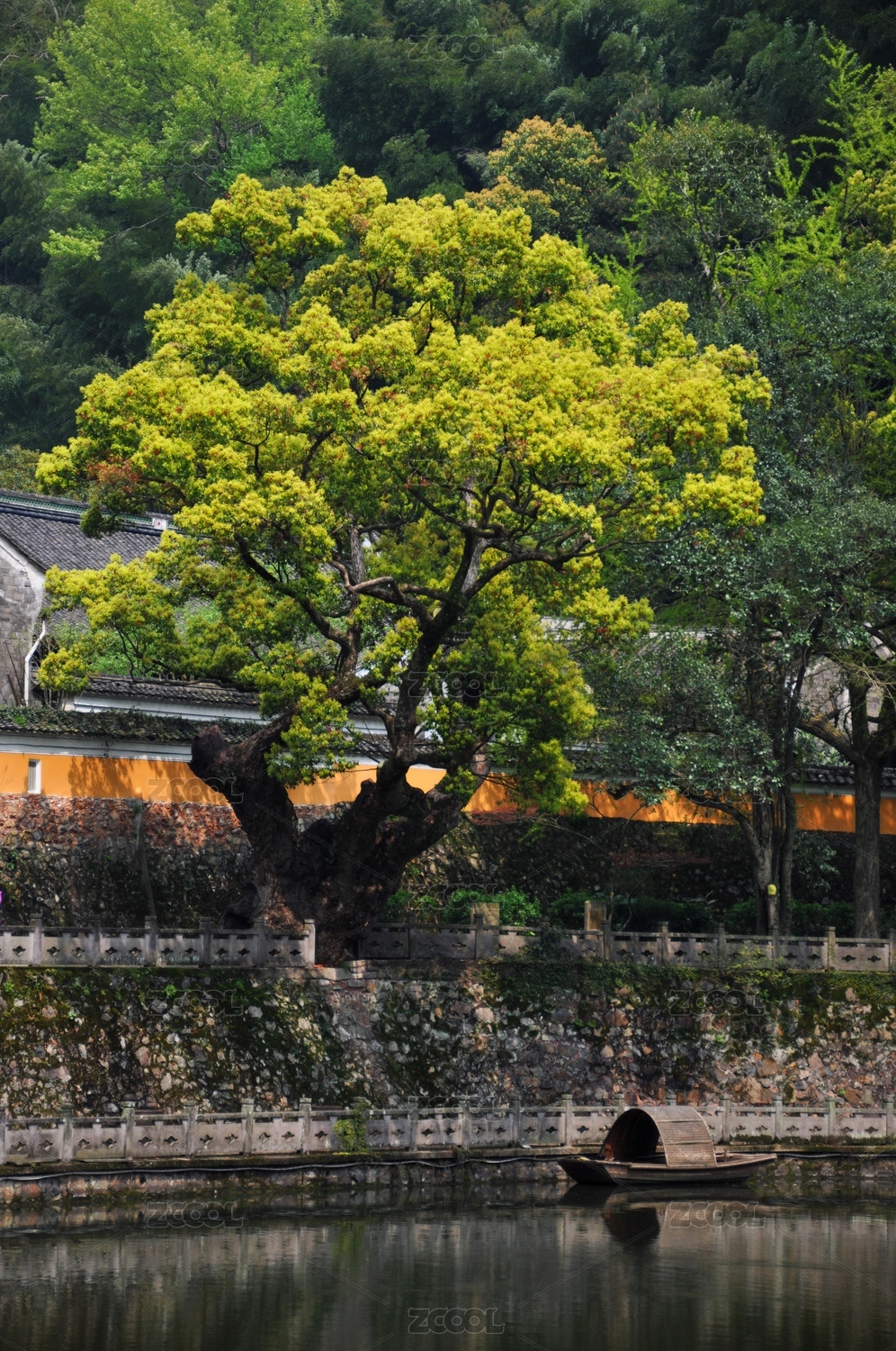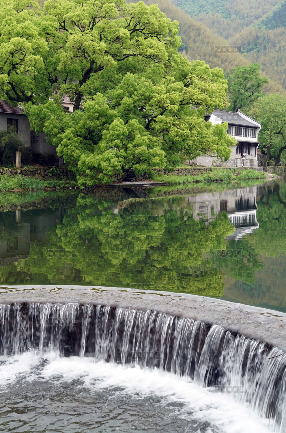 古树建筑及其倒影,中国江西婺源