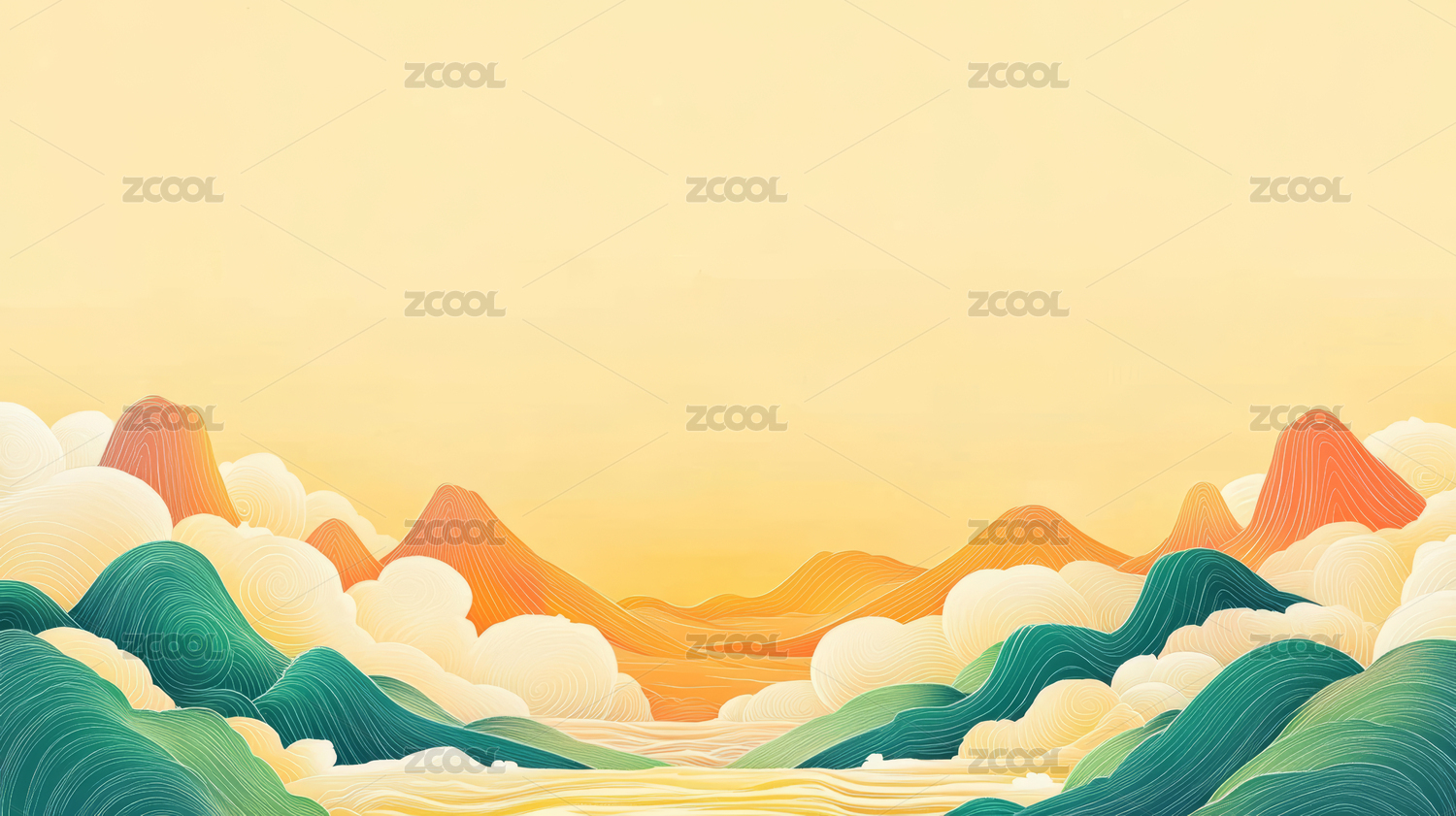 新中式山水祥云背景