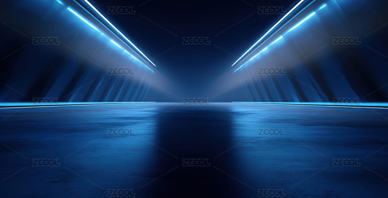 蓝色光廊隧道场景
