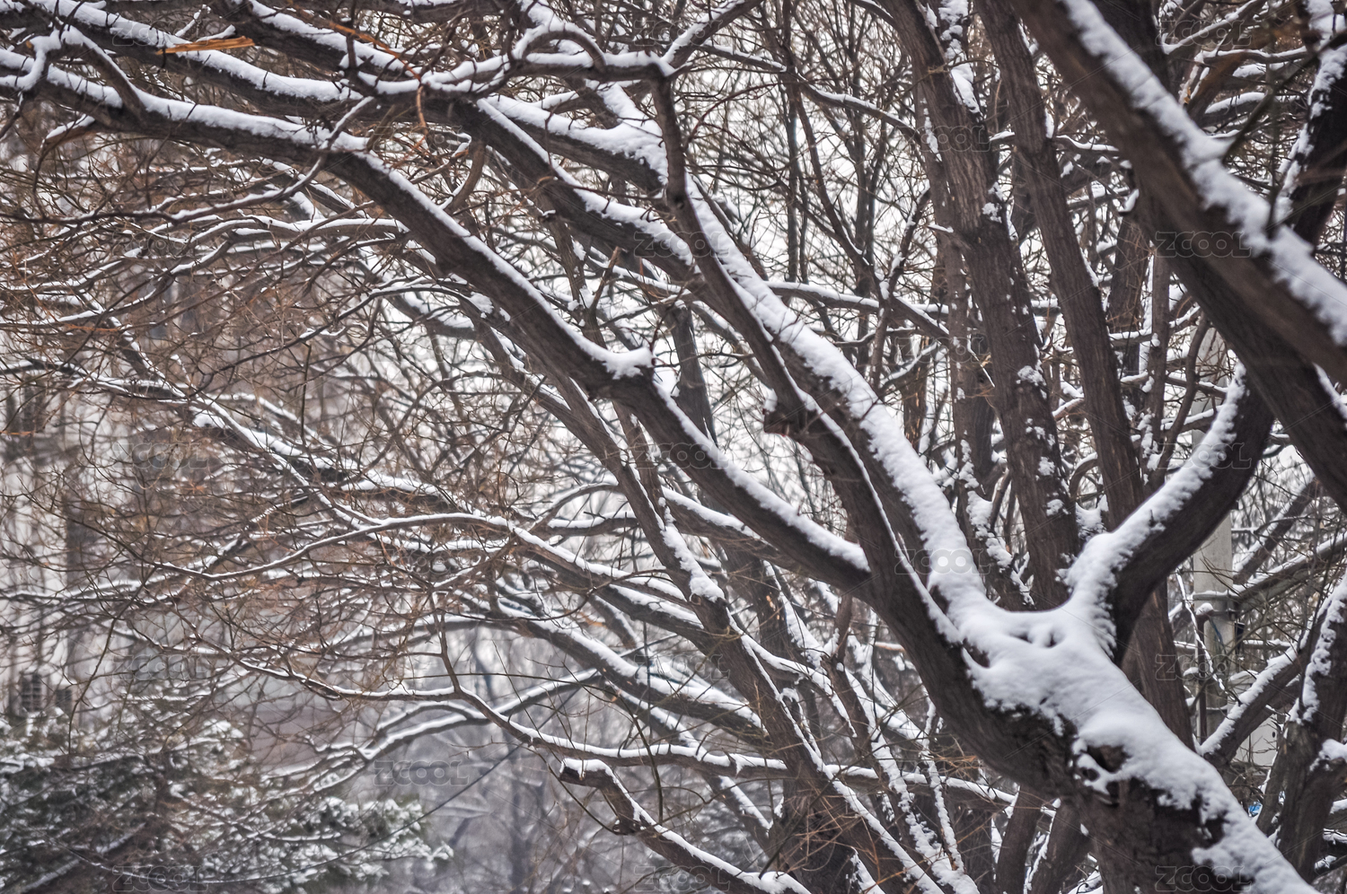冬天树枝上的落雪