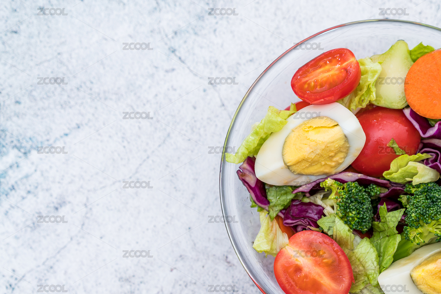 沙拉,蔬菜,色拉,小西红柿,生菜,鸡蛋,西兰花,包菜,西生菜,圆生菜