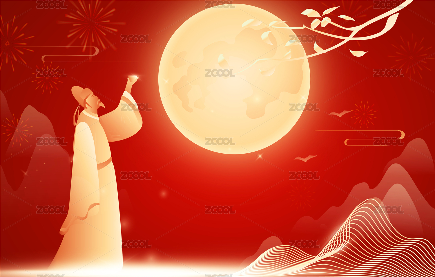 国风知己朋友在中秋之夜畅谈对饮赏月插画