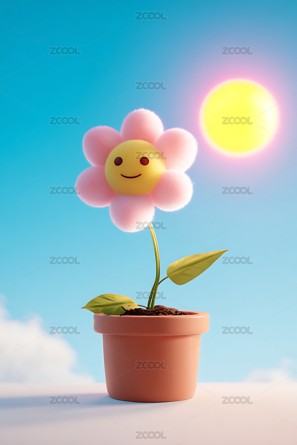 3d卡通可爱的拟人表情毛毡质感花花元素