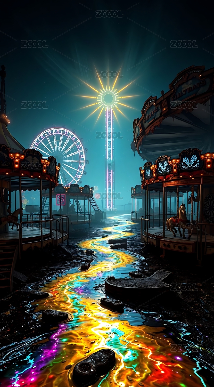 摩天轮,夜景,商区,停车场,商场,城市,霓虹灯,潮流,繁华,都市