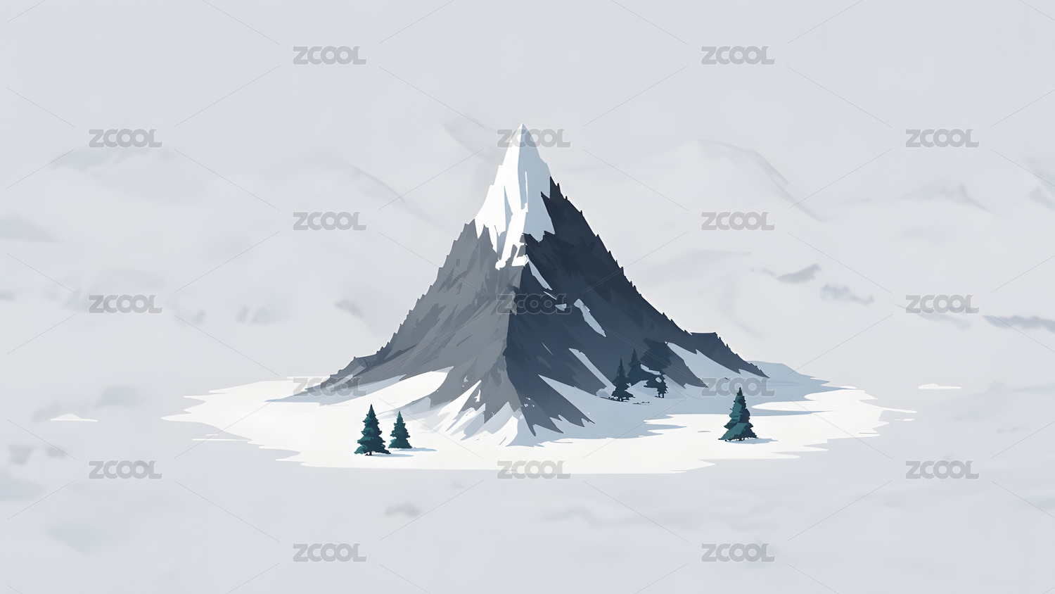 白天晴朗白雪覆盖的巍峨山峰雪山3D插画