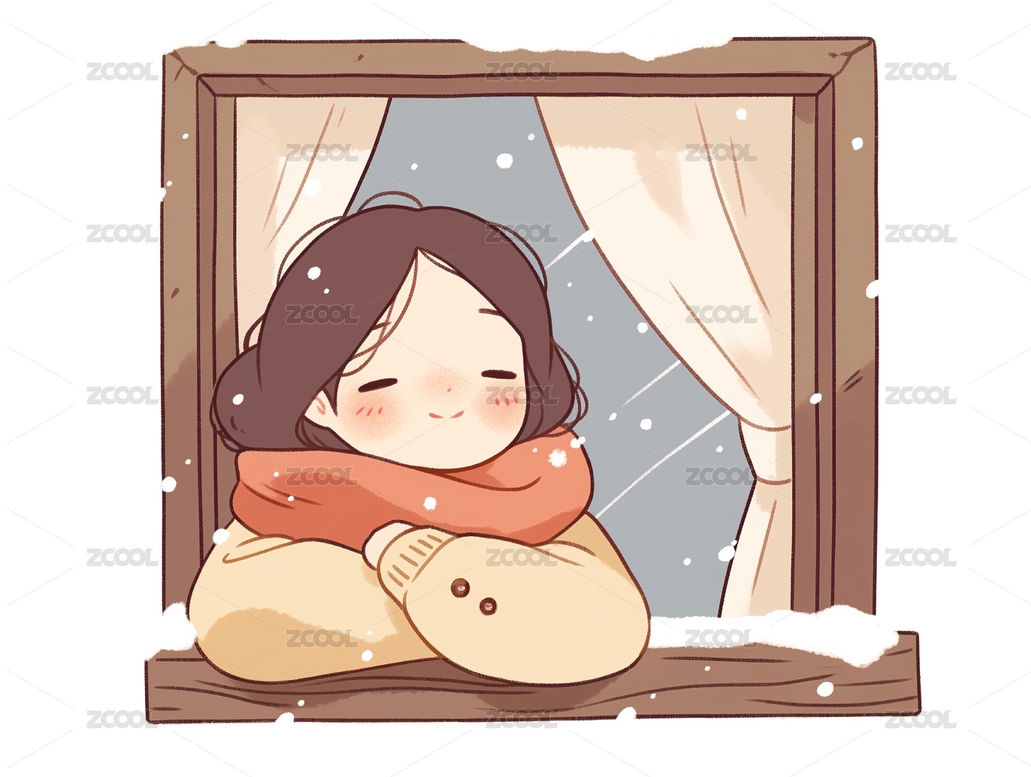 女孩,插画,雪,冬天,大雪,节日,寒冷,小雪,大寒,小寒