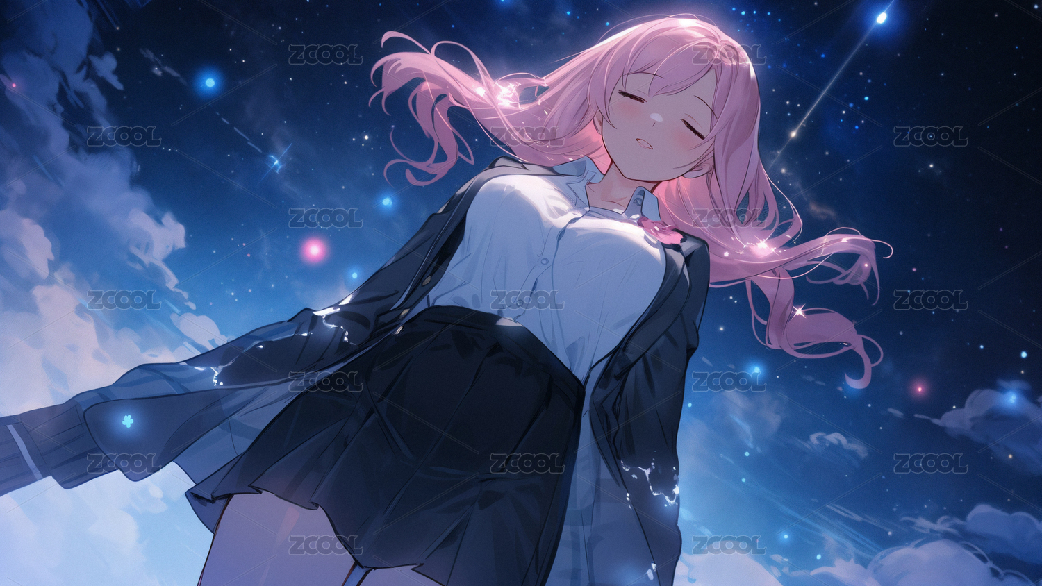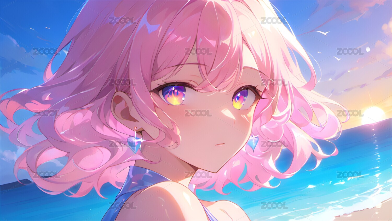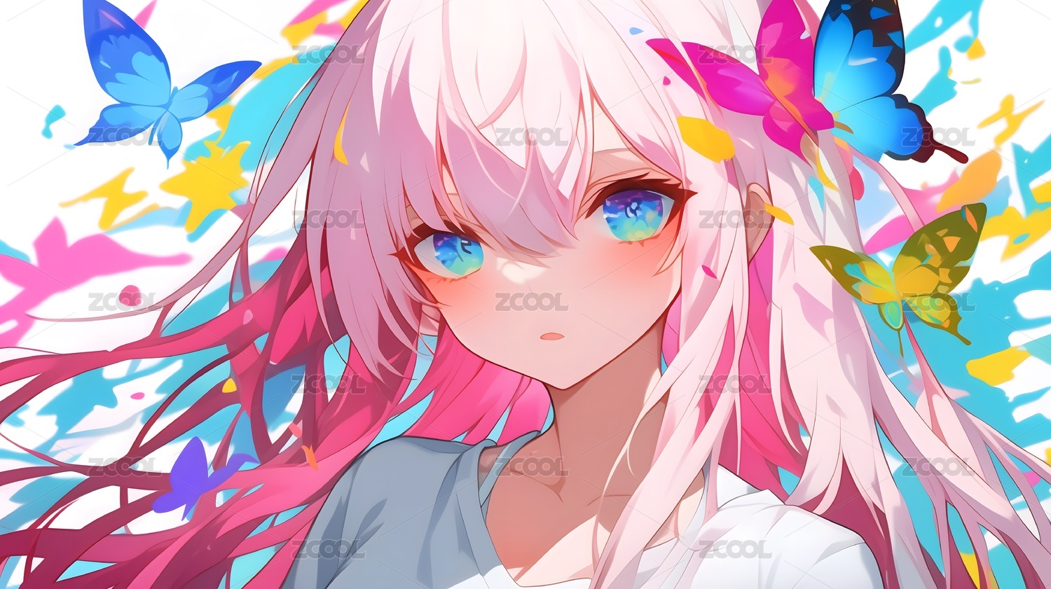 可爱的动漫女孩缤纷的色彩壁纸背景
