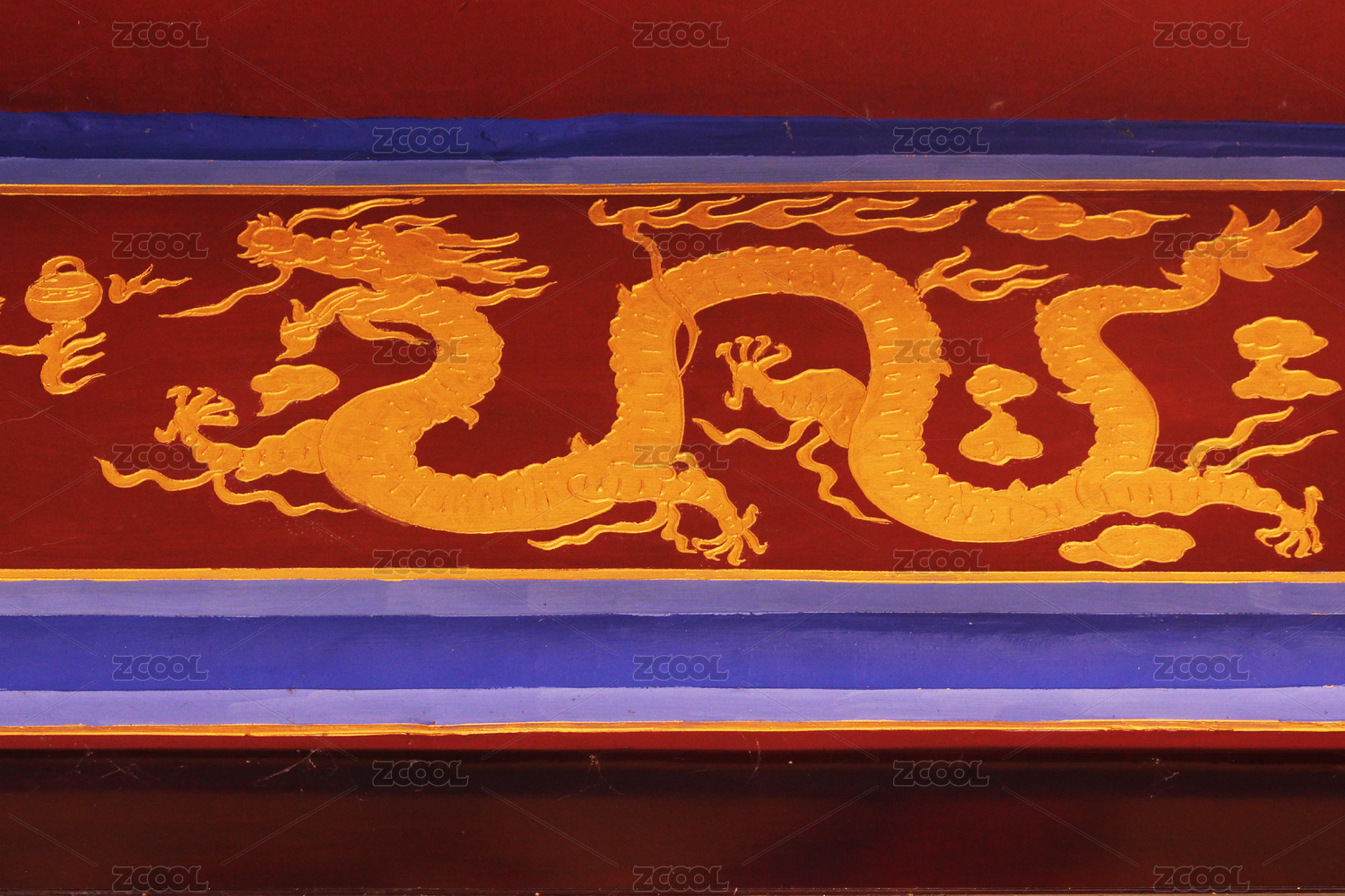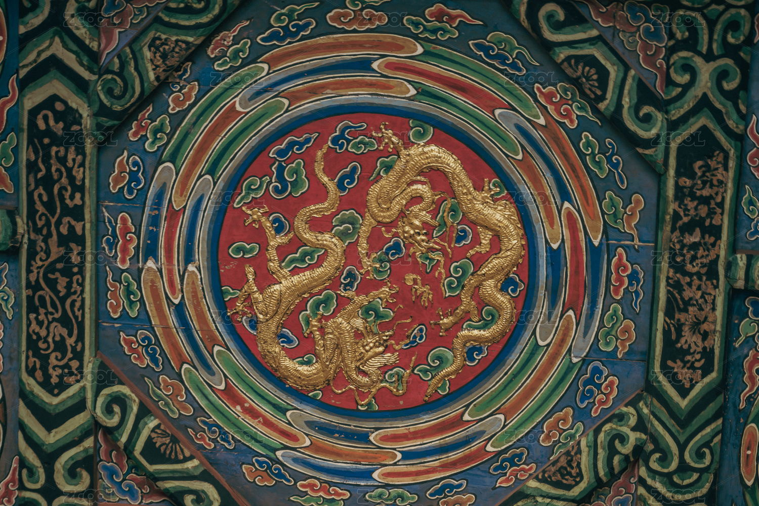 北京颐和园屋顶天花板上的龙纹彩绘装饰