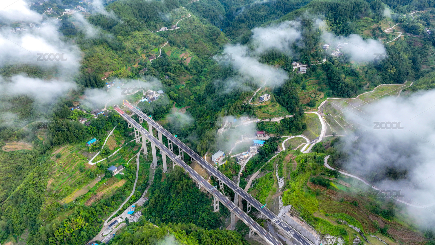 亚洲,中国,重庆,高速,雨中高速,云端高速,雾中高速,群山中的高速