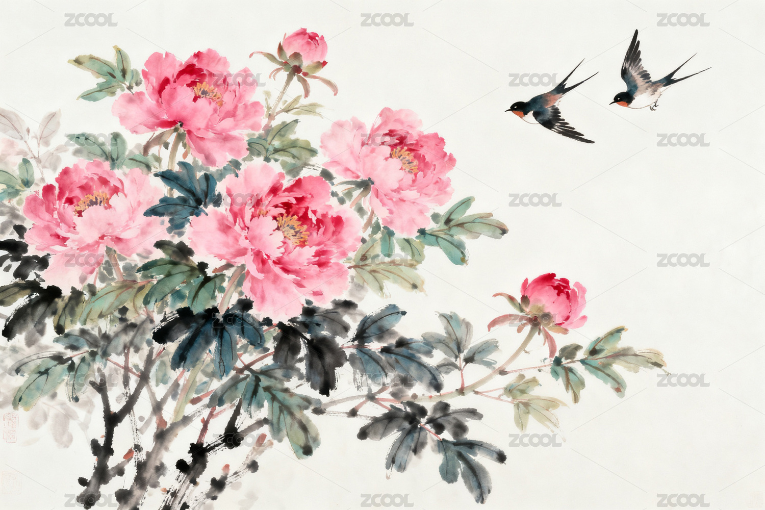 水墨画,中国风,写意画,插画,中国画,传统,国风,植物,艺术,鸟类