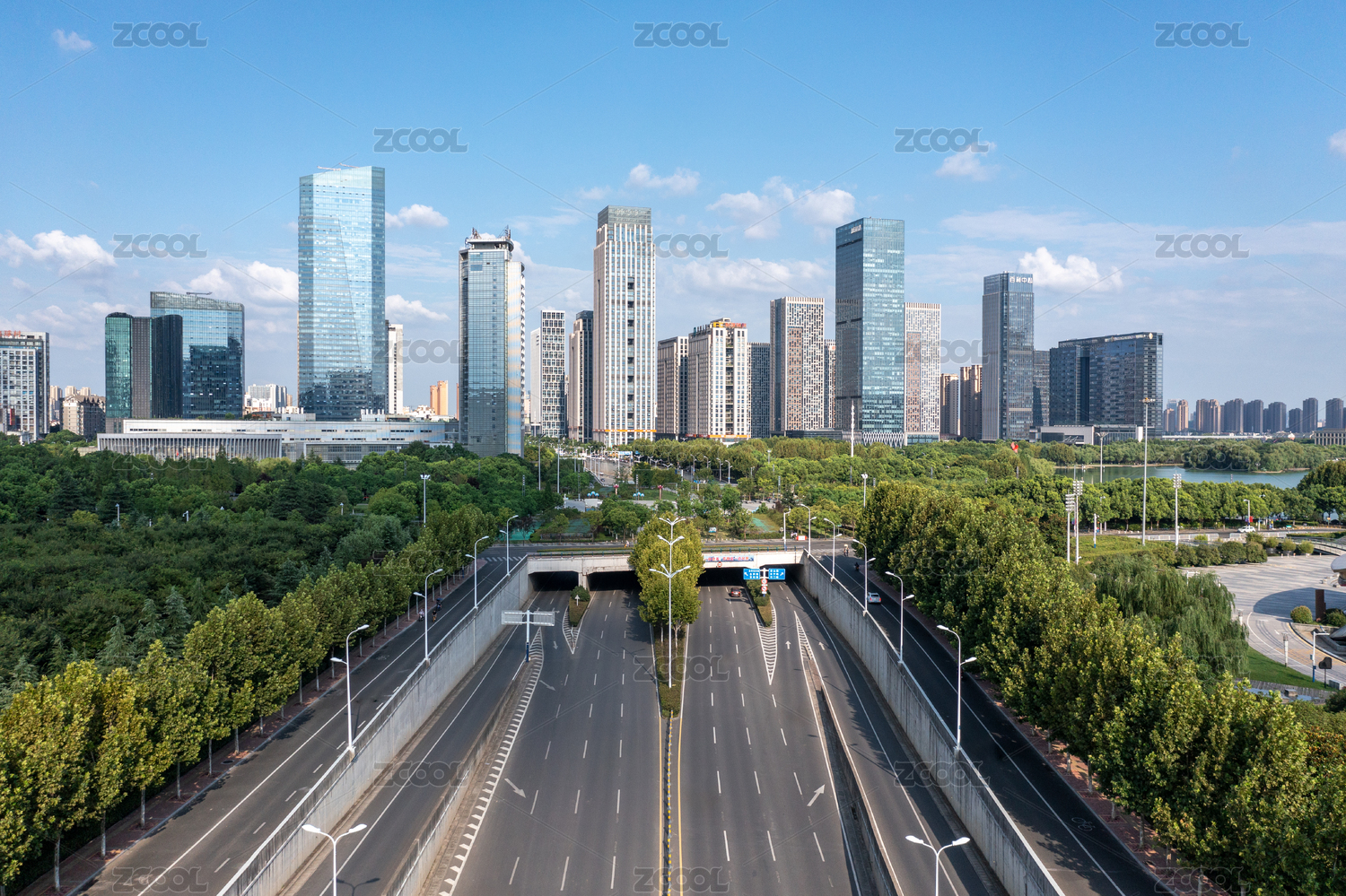 航拍中国江苏省常州新北区龙城大道隧道与博物馆