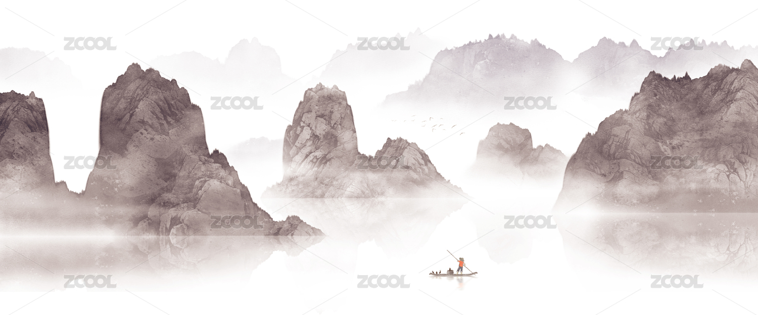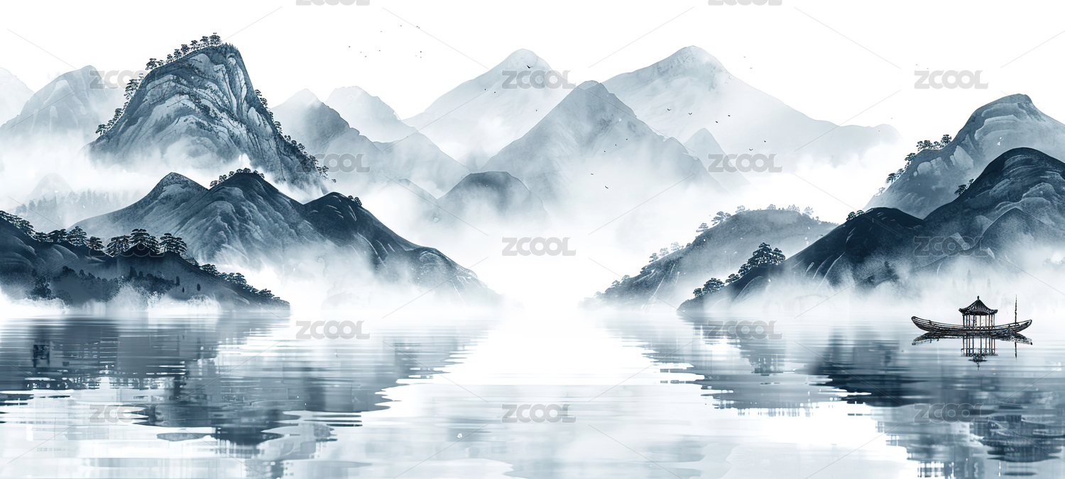 插画,山水,山水画,水墨画,山脉,风景,鸟类,装饰画,新中式风格,国风